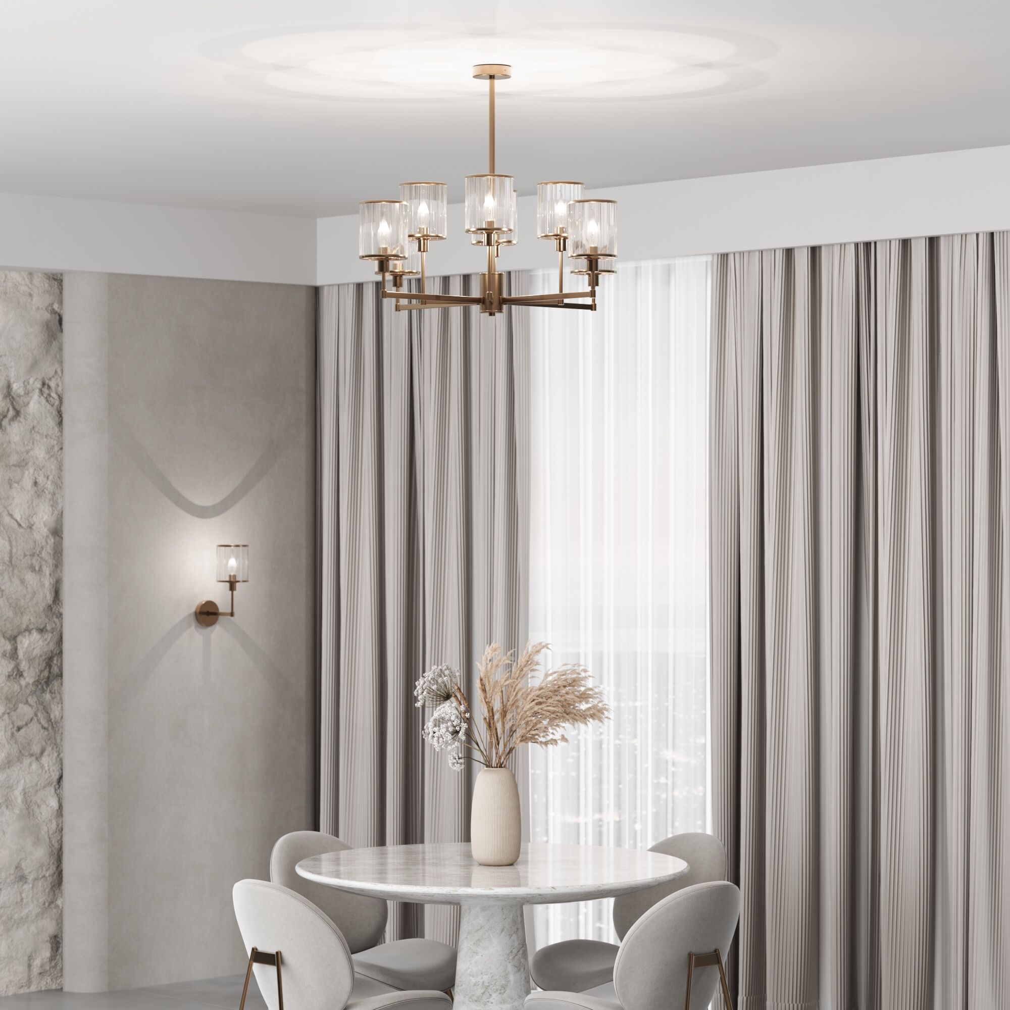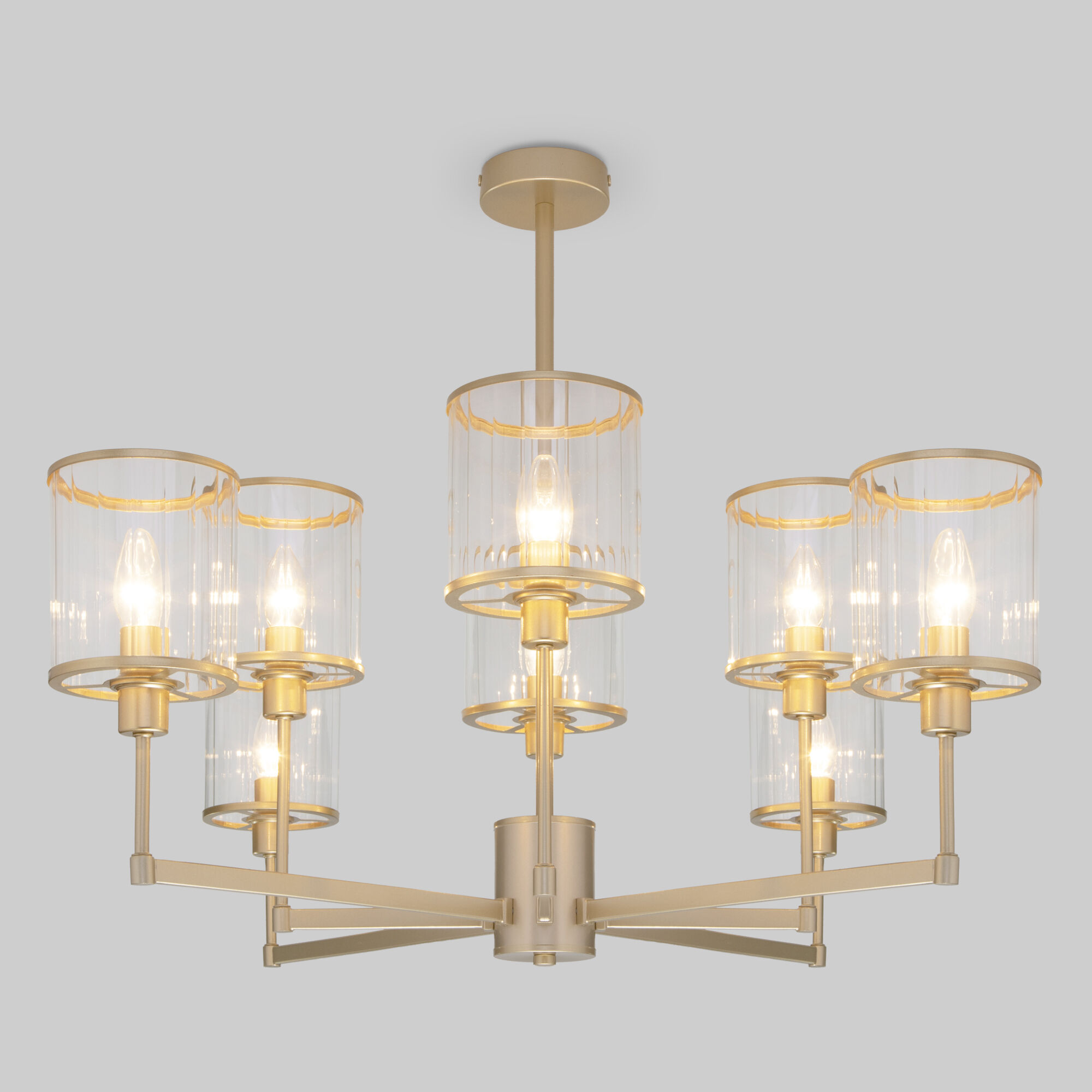 <p>Люстра Inari в благородном цвете золота создана, чтобы стать центром визуального притяжения в современном интерьере зала, спальни или кухни. Изящный, но в то же время монументальный дизайн, который хочется рассматривать, обращая внимание на детали. Восемь фактурных стеклянных плафонов мягко рассеивают свет, наполняя им максимум пространства за счет открытой конструкции. В потолочном светильнике используются сменные лампы с цоколем E14.</p>