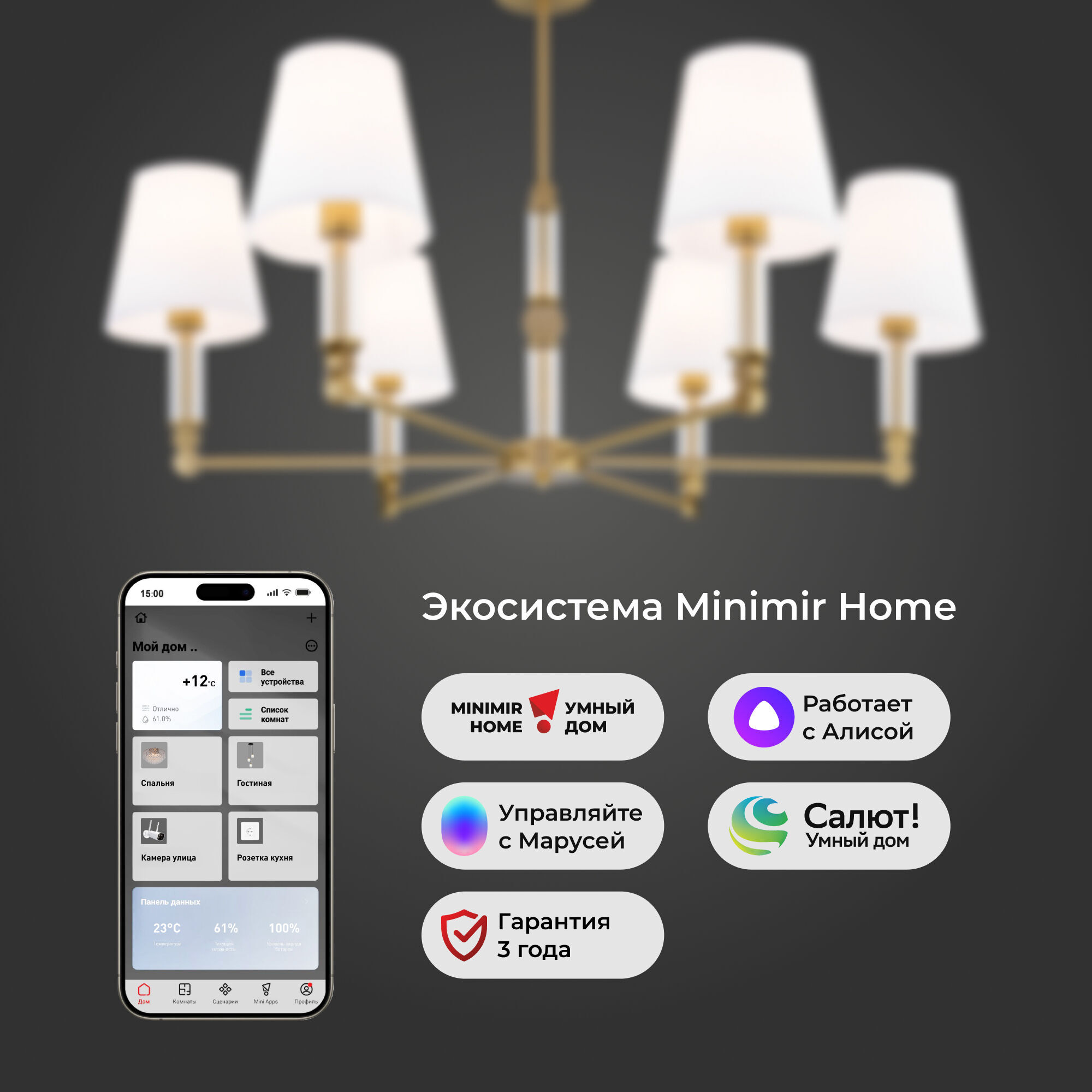 Умный потолочный светильник 60145/6 латунь