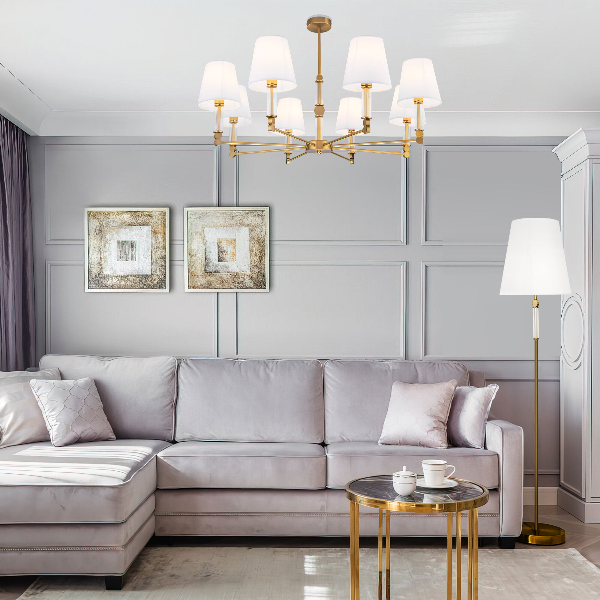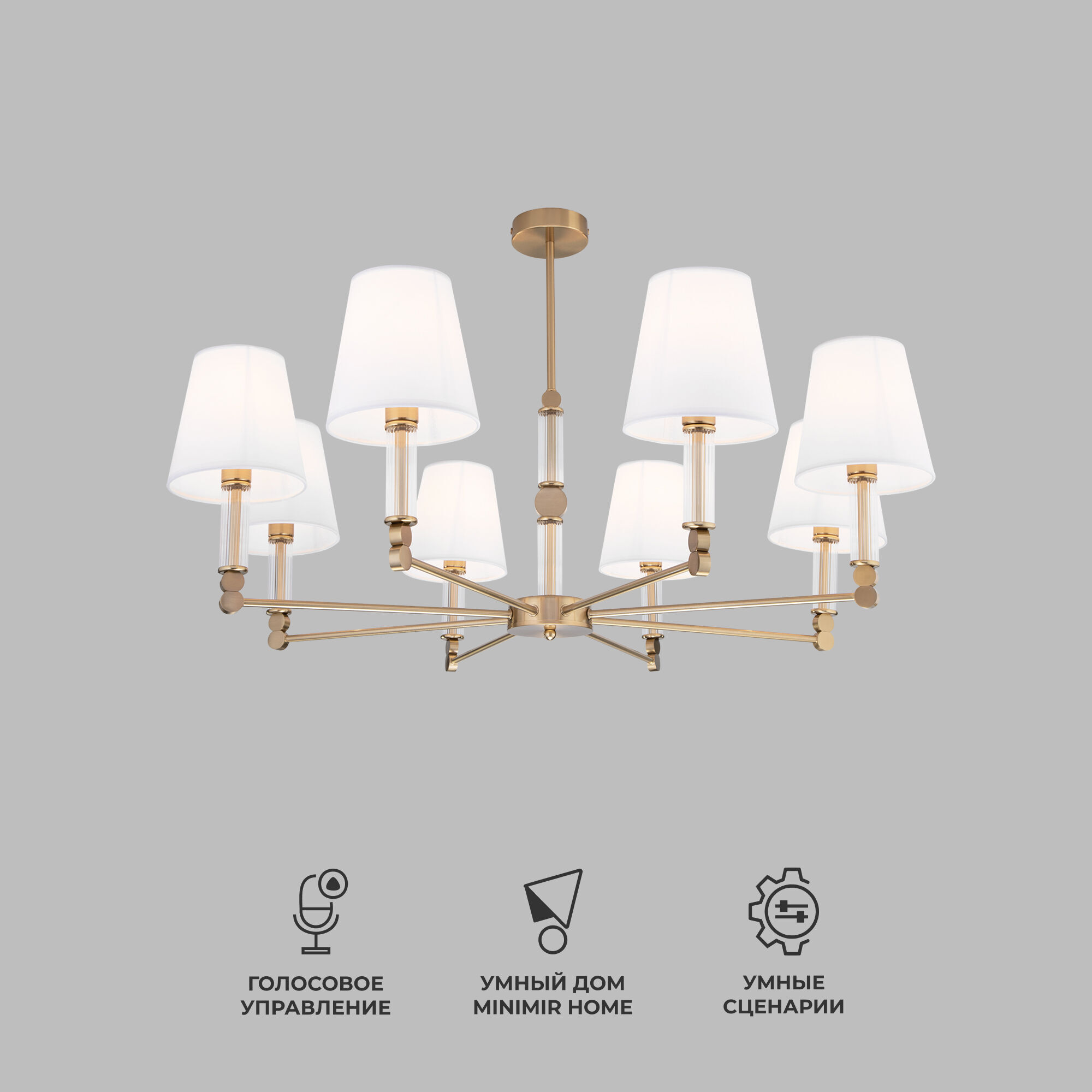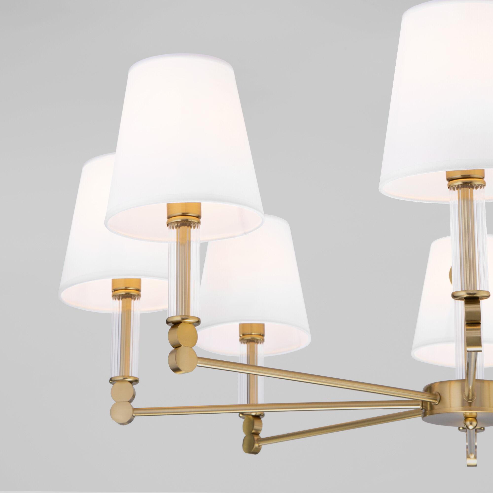 <p>Элегантная люстра Conso соединяет в себе изысканный прованс и аристократичность. В дизайне потолочного светильника использованы восемь изящных тканевых абажуров, дающих мягкое рассеянное свечение, и утонченный декор арматуры цвета латунь. Основания плафонов украшают вставки из прозрачного стекла. В модели используются сменные лампы с цоколем E14. Классический потолочный светильник Conso не только наполнит пространство светом, но добавит в интерьер умеренную торжественность.</p>