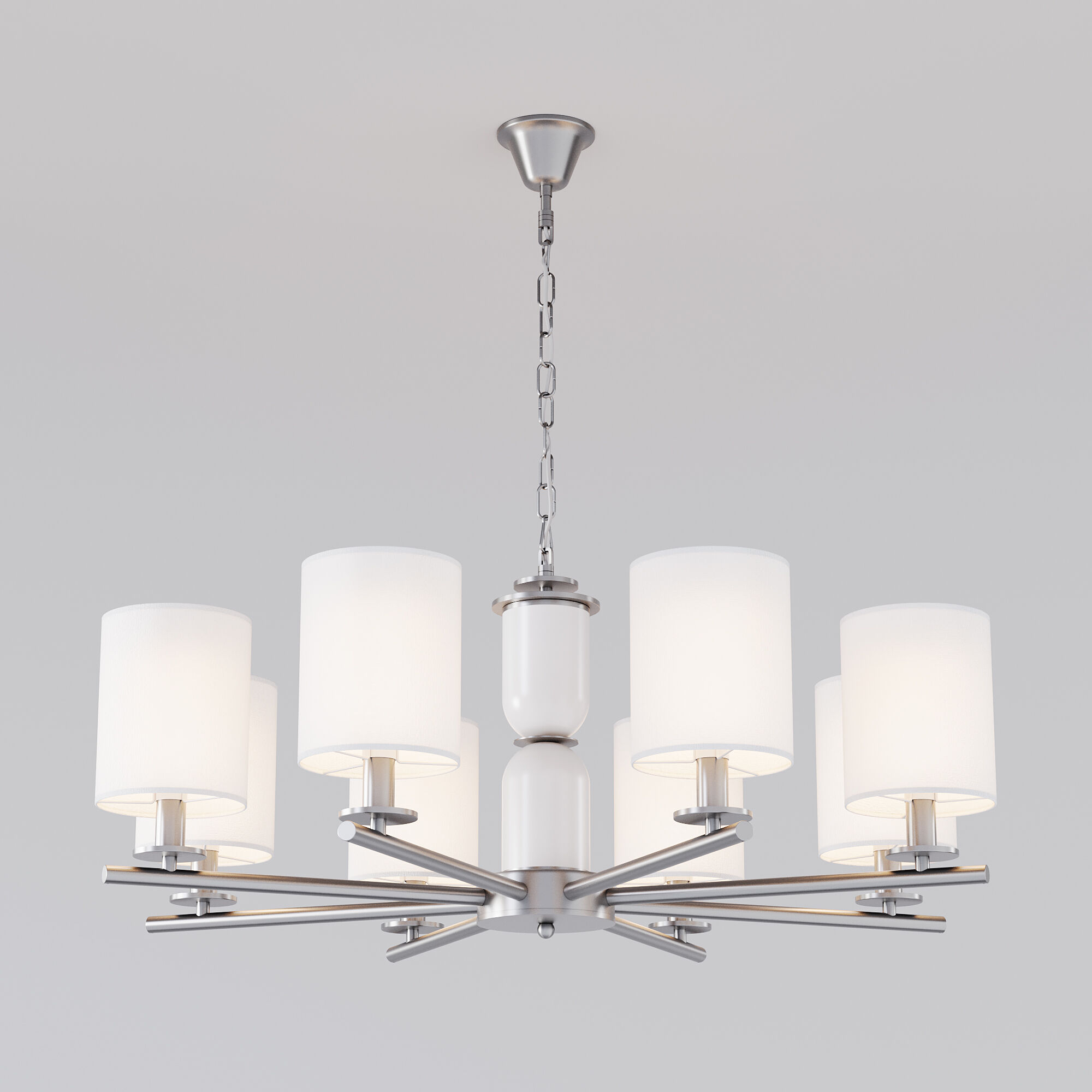 <p>Создать качественное освещение вам поможет классическая потолочная люстра с тканевыми абажурами. Простые минималистичные формы и сдержанные тона станут идеальным дополнением для вашего интерьера. Люстра украсит потолок вашей спальни и создаст полноценное освещение на площадь 14 м&sup2;.</p> <p>В люстре рекомендуется использовать сменные лампы накаливания с цоколем Е14 с максимальной мощностью 40 Вт. В производстве люстры использовали высококачественный метал с надежным защитным покрытием.</p>