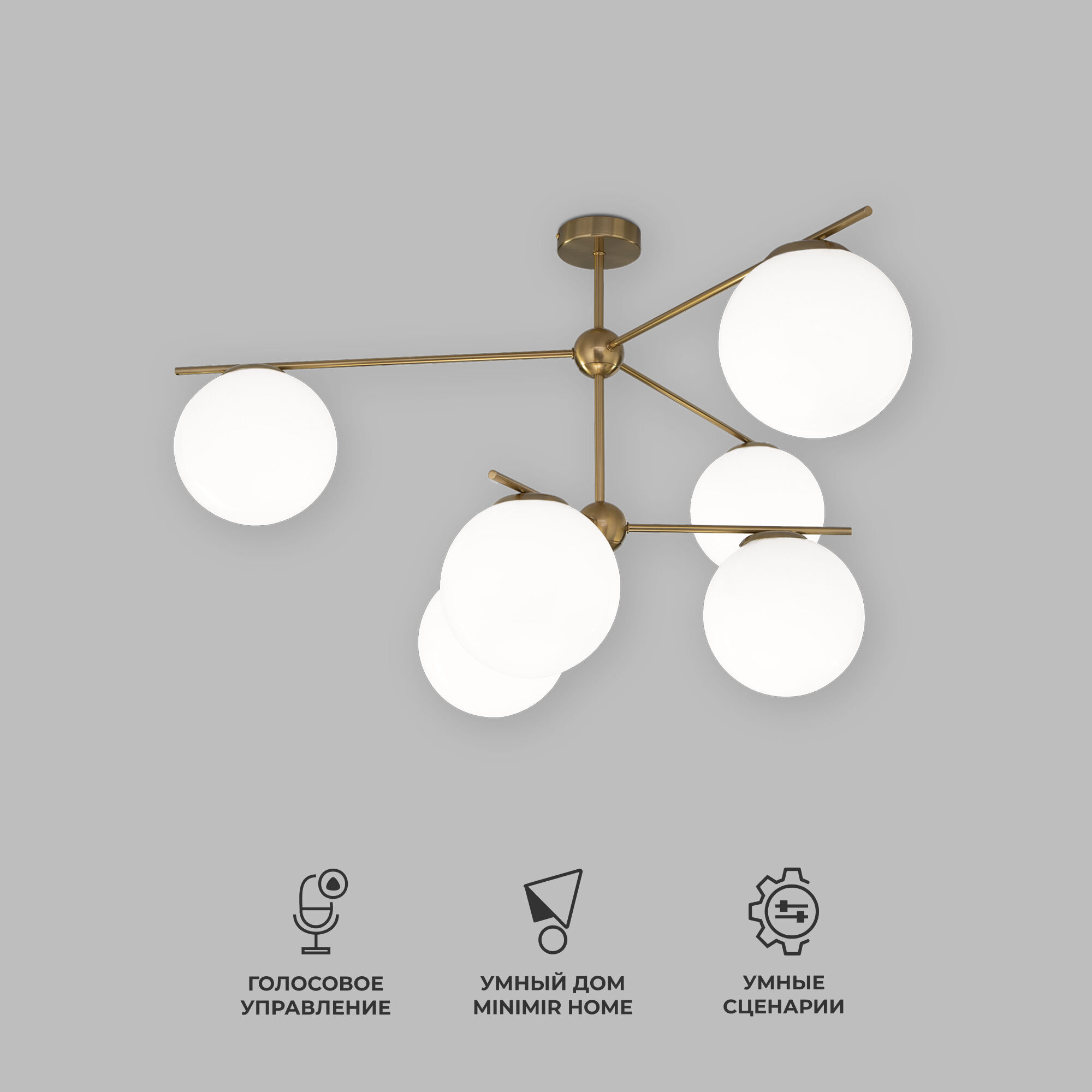 Умный потолочный светильник со стеклянными плафонами 60147/6 латунь