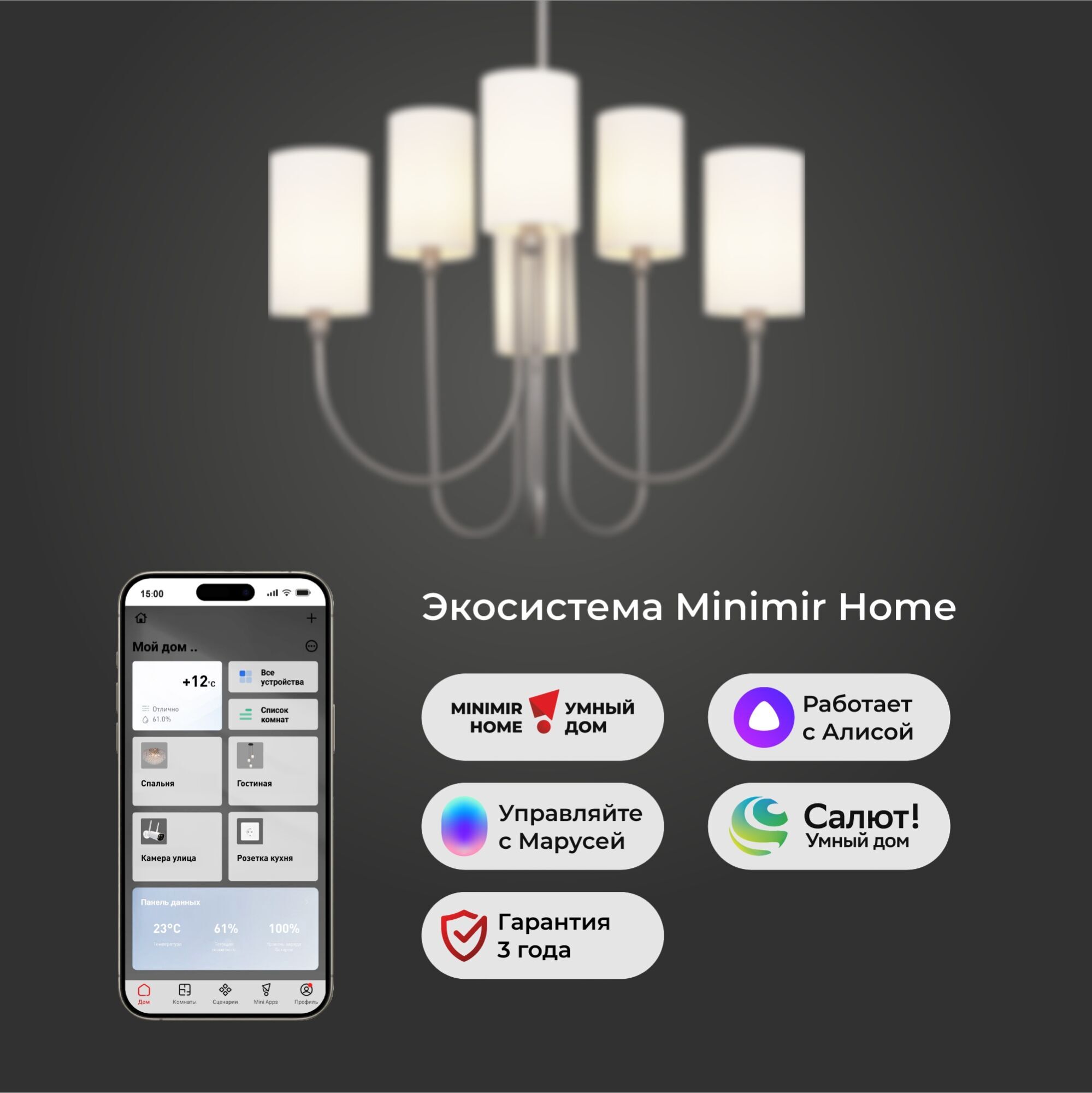 Умная подвесная люстра 60164/6 никель