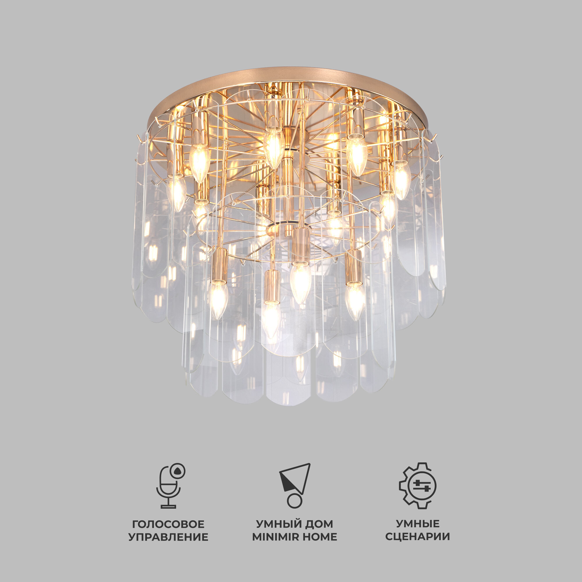 Умная потолочная люстра со стеклянными плафонами 60170 золото