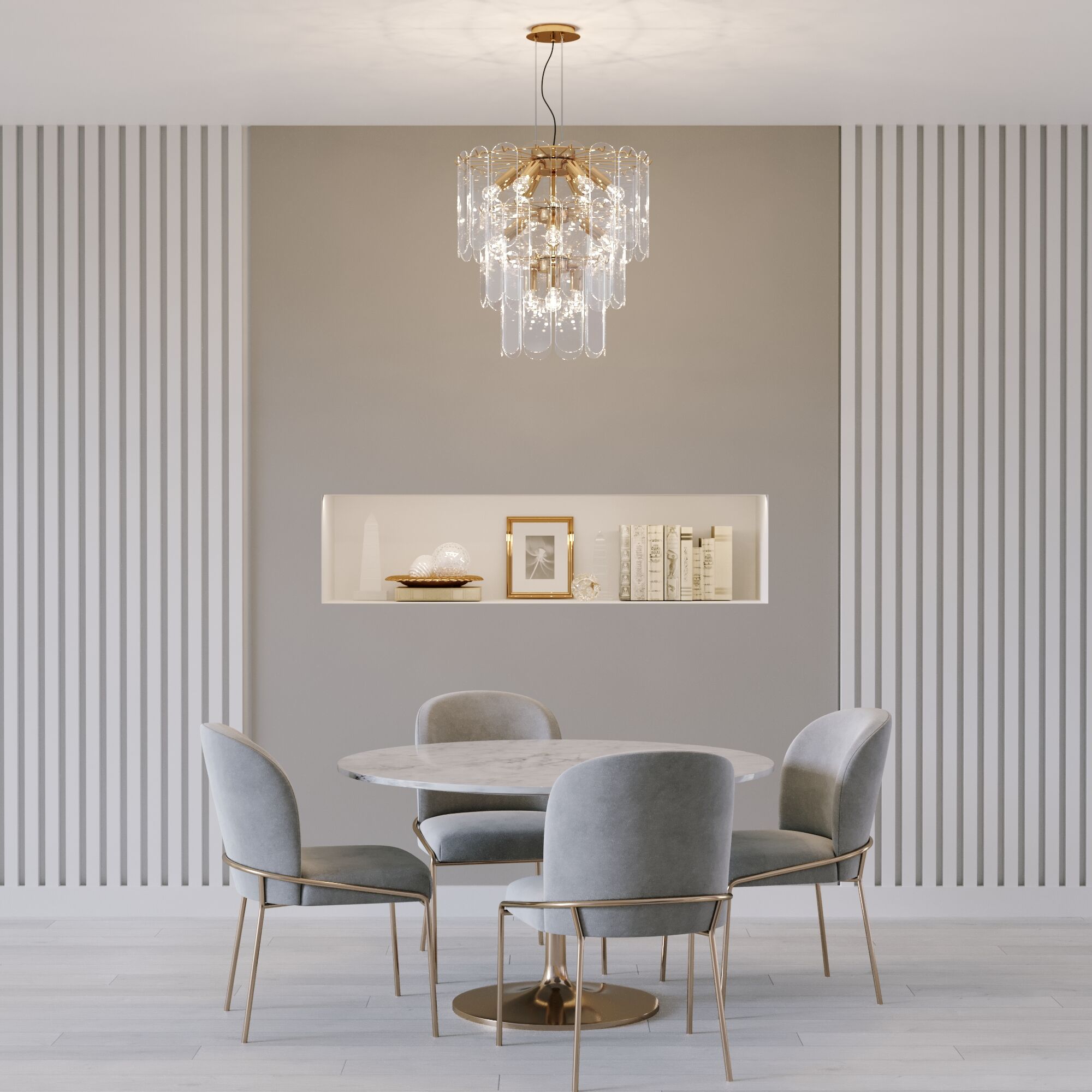 Умная подвесная люстра со стеклянными плафонами 60171 золото