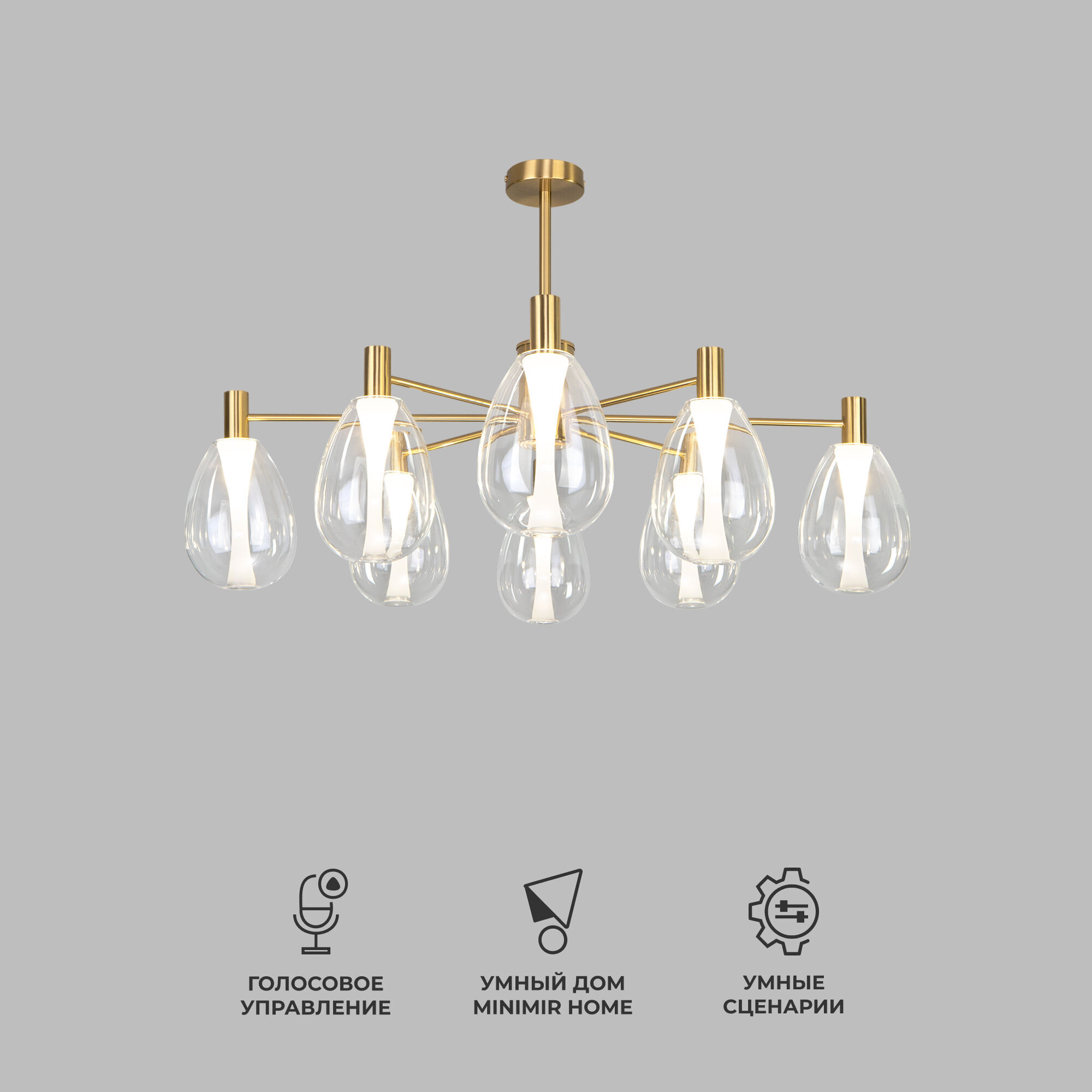 Умный потолочный светильник со стеклянными плафонами 60175/8 латунь Smart