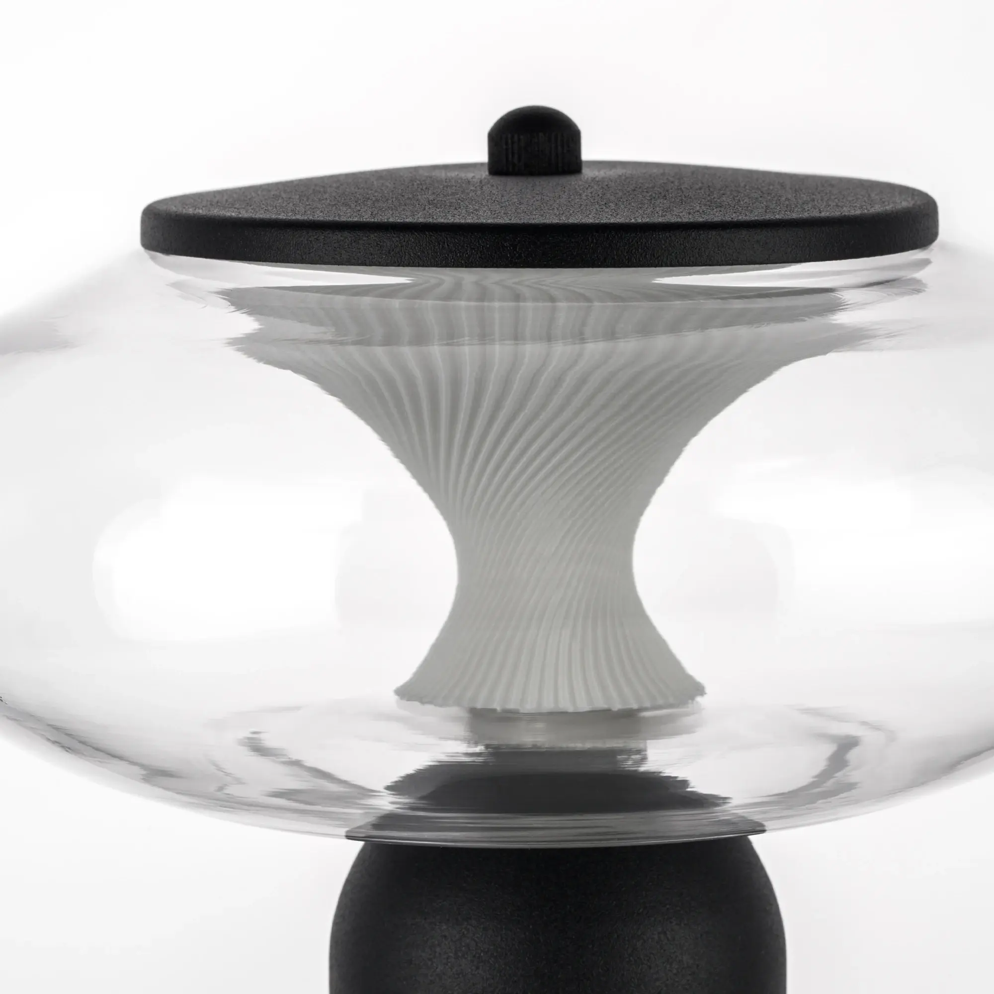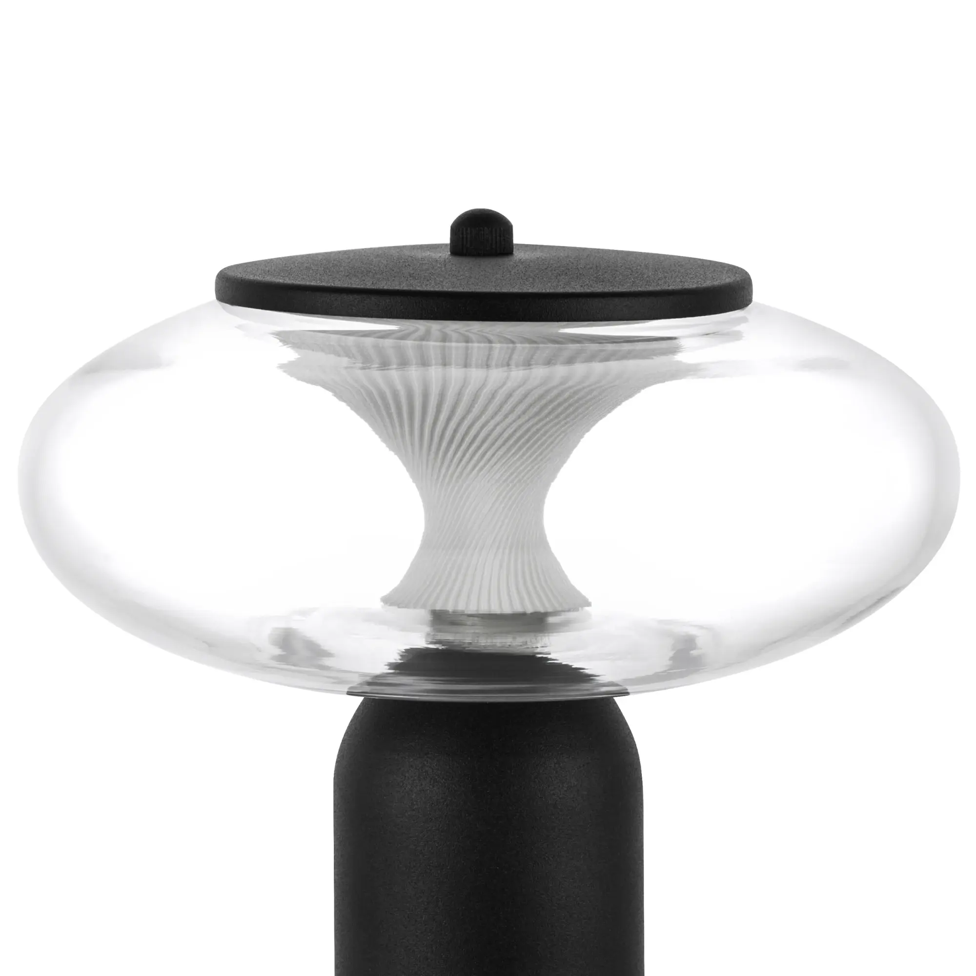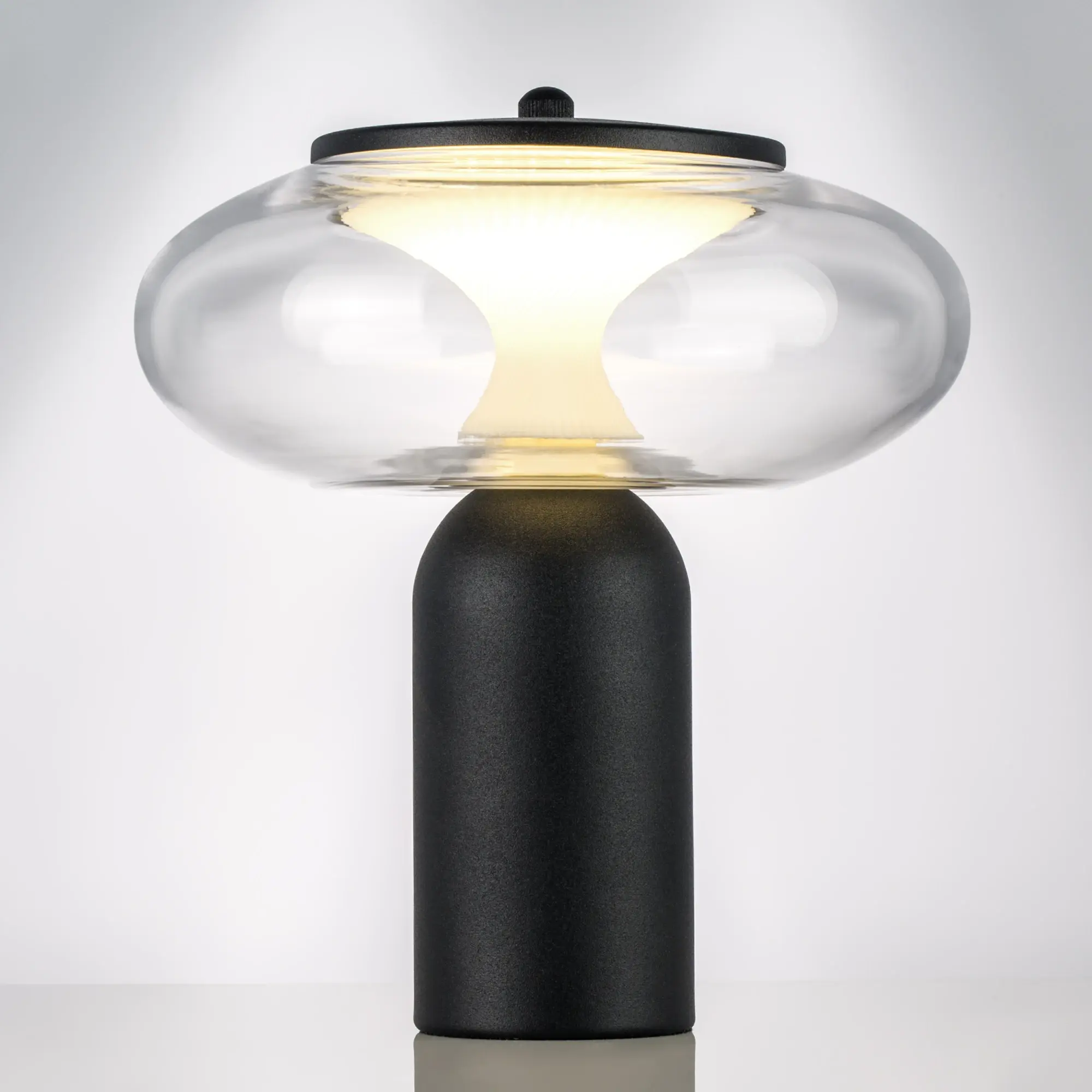 Высота min-max (см): 20; Ширина (см): 18; Вес (кг): 0,8; Кол-во ламп: LED; Мощность max (W): 8; Цвет основания/цвет стекла или абажура: Черный/прозрачный; Световой поток: 350Lm, 3000K