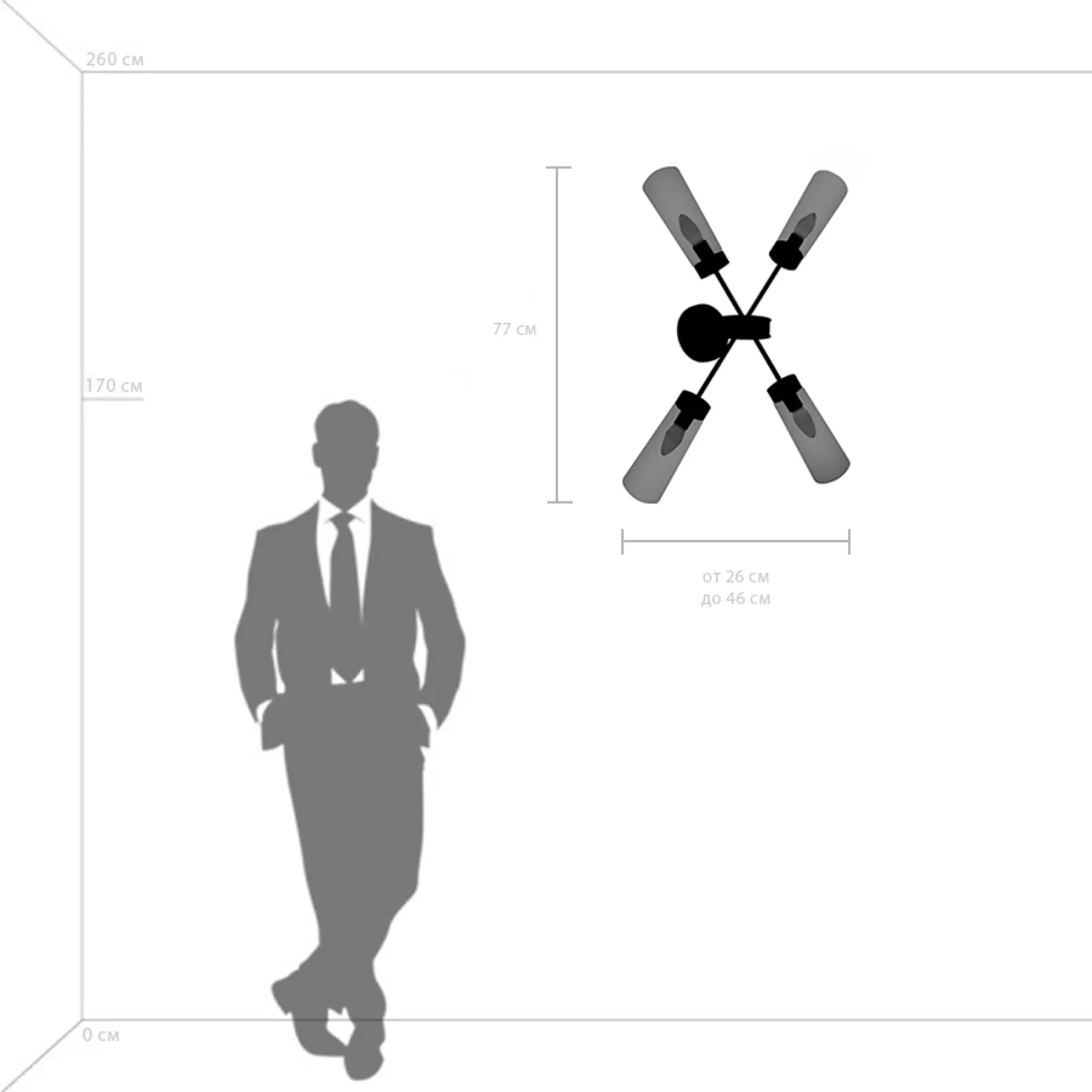 Высота min-max (см): 77; Ширина (см): 26*46; Глубина (см):23; Вес (кг): 2,3; Кол-во ламп: 4хE14; Мощность max (W): 40; Цвет основания/цвет стекла или абажура: шампань/прозрачный