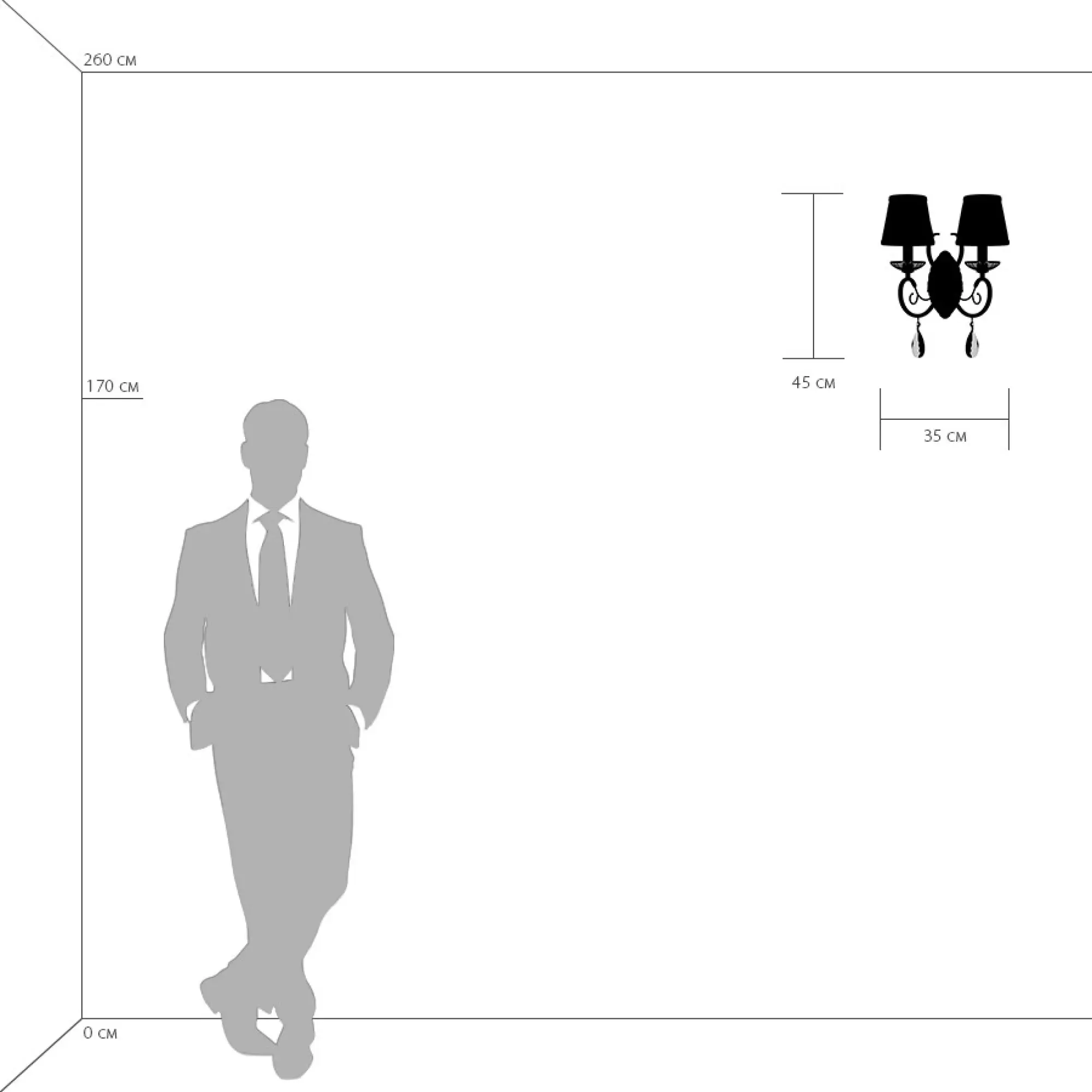 Высота min-max (см): 45; Ширина (см): 35; Глубина (см): 22; Вес (кг): 1,75; Кол-во ламп: 2хE14; Мощность max (W): 40; Цвет основания/цвет стекла или абажура: Chrome;