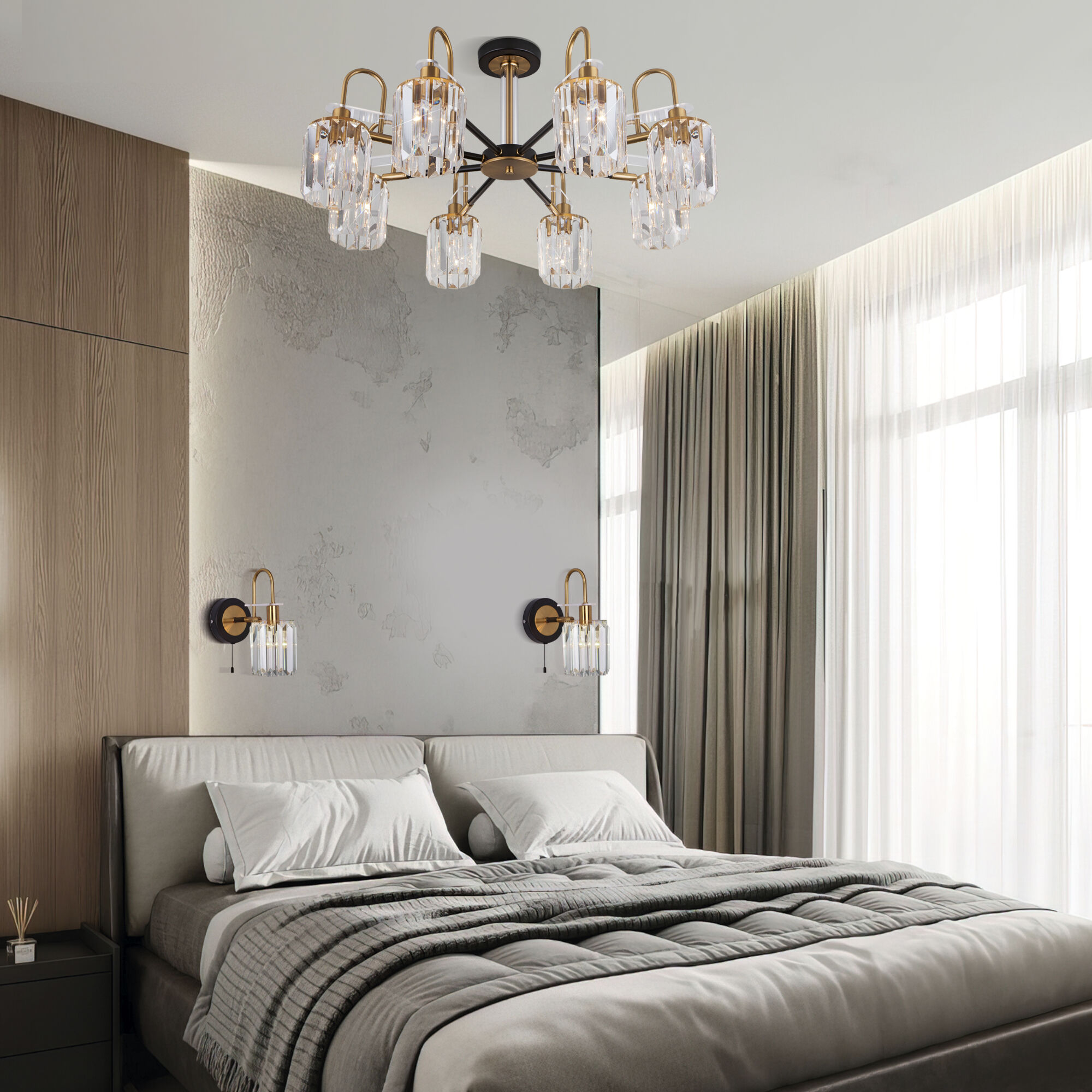 <p>Преобразить ваше потолочное пространство и организовать качественное освещение на площади 36 м кв. поможет стильная люстра в стиле loft. Строгий внешний вид, простота форм, изысканность хрусталя внесут в современный интерьер индустриального стиля и роскоши, а гармоничный цвет черный с золотом подчеркнет его.</p> <p>В восьмирожковой люстре используются сменные лампы с цоколем E14, рассчитанные на максимальную мощность 60 Вт. Потолочный светильник оснащен хрустальными плафонами. В производстве люстры использован высококачественный металл с надежным защитным покрытием и хрусталь марки Strotskis.</p>