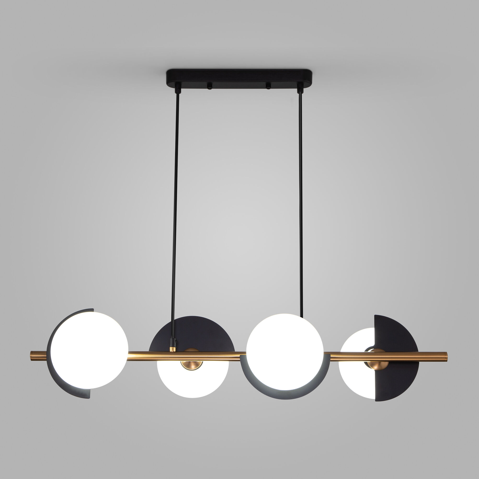 <p>Подвесной светильник 70149/4 черный/латунь предназначен для создания дополнительного освещения и акцентной подсветки в современных интерьерах. Светильник со сменными лампами G9 создаст качественное освещение на площади 5 м кв. и подсветит рабочие зоны на кухне, в зале, в кабинете и в других местах.</p> <p>Корпус светильника изготовлен из прочного металла, который надежно защищает внутренний механизм от повреждений. Накладной светильник просто устанавливается на натяжных потолках при помощи монтажной планки. &nbsp;</p>