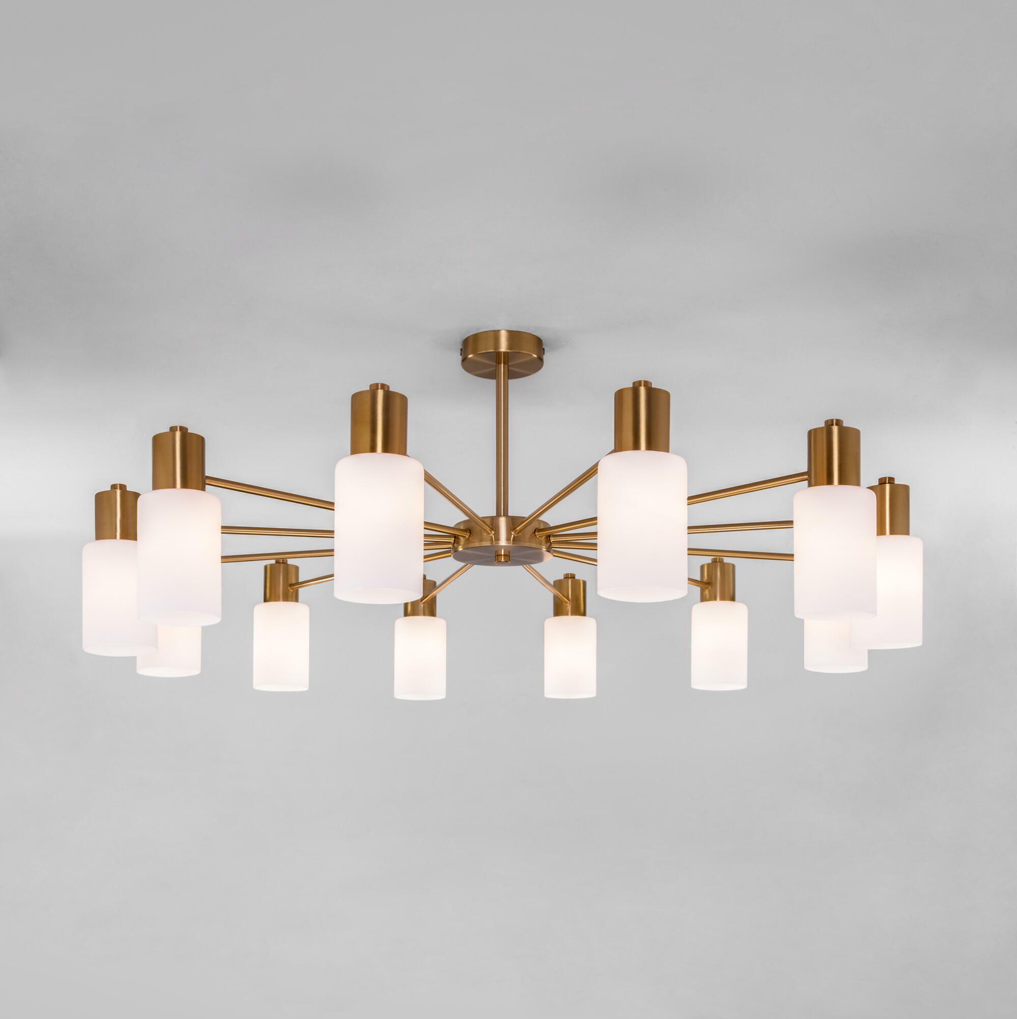 <p>Потолочная люстра со стеклянными плафонами 70160/12 латунь предназначена для создания основного освещения в современных и классических интерьерах, подходит для различных типов помещений и рассчитана на площадь освещения 21 м&sup2;.</p> <p>Дизайнерская люстра оснащена патронами с цоколем Е14, которые рассчитаны на максимальную мощность ламп 60 Вт. Люстра в стиле лофт украшена эффектным декором из металла и дополнена выразительными стеклянными плафонами. Арматура изготовлена из высококачественного металла с надежным защитным покрытием.</p>