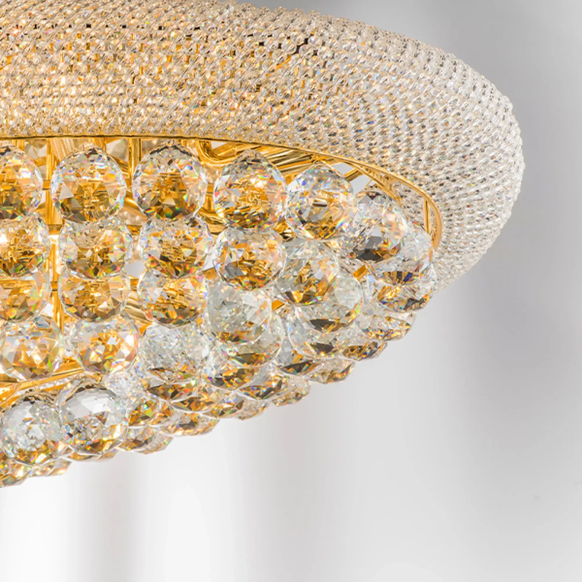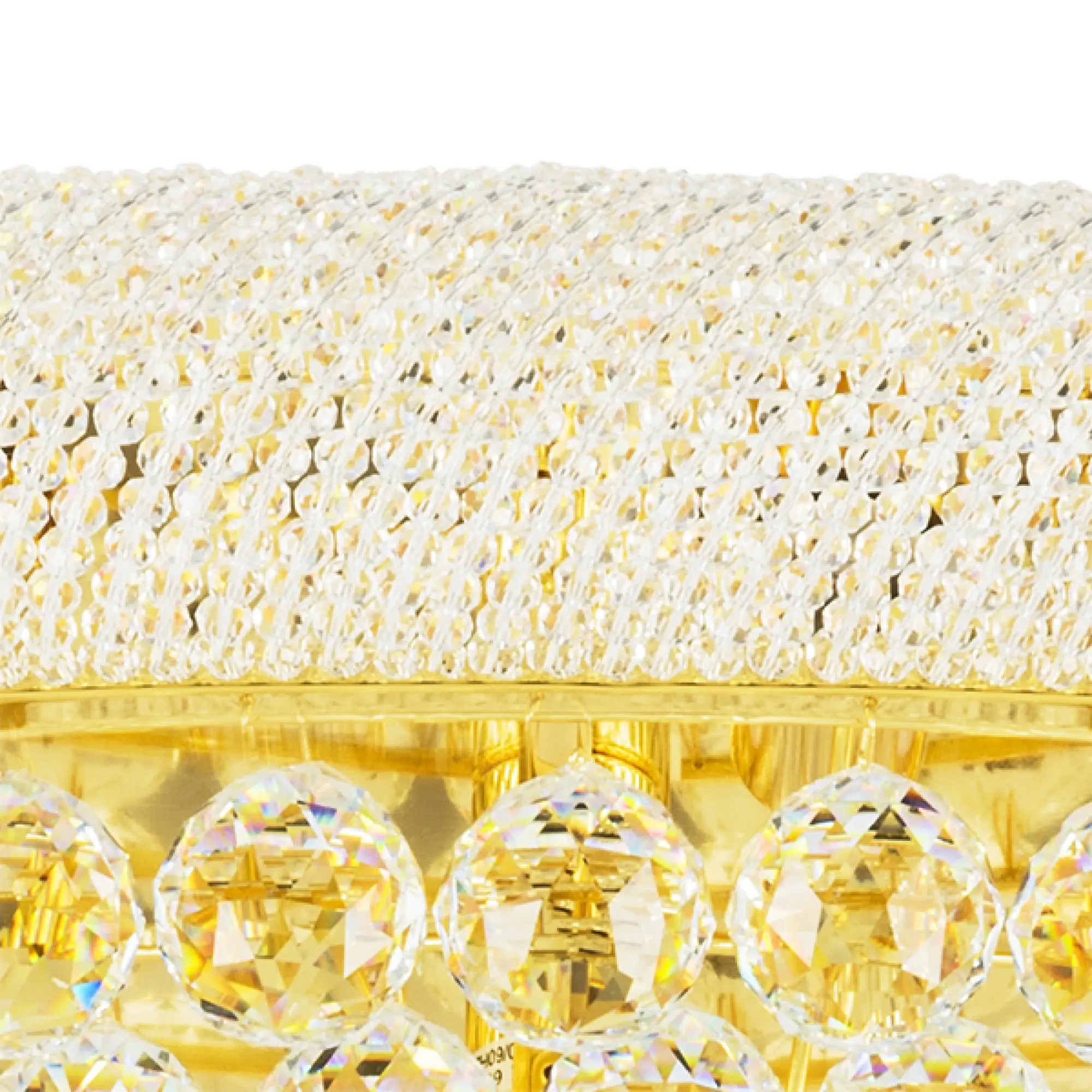 Высота min-max (см): 25; Ширина (см): 103*61; Вес (кг): 26,3; Кол-во ламп: 21xE14; Мощность max (W): 40; Цвет основания/цвет стекла или абажура: Gold/Cristal Clear;