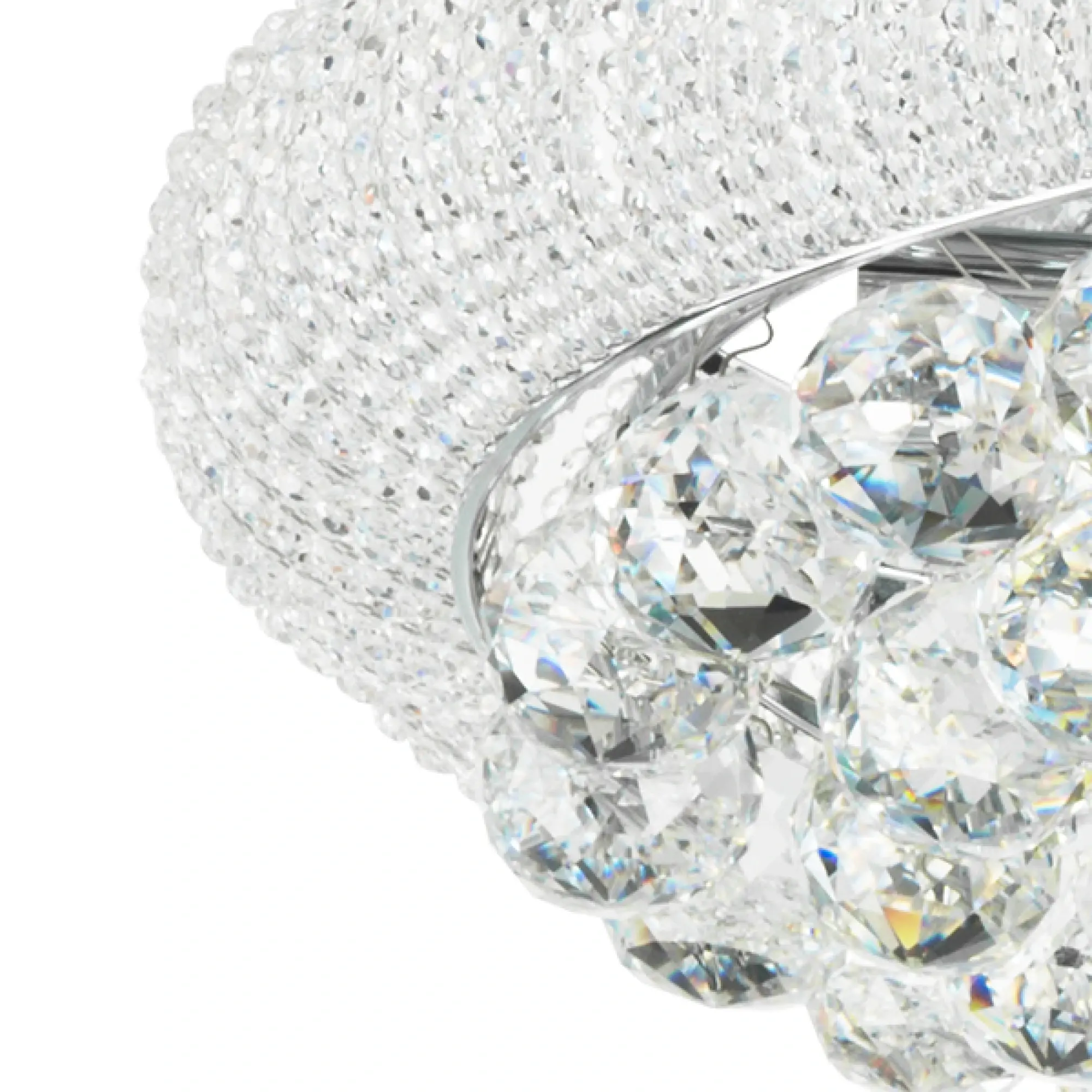 Высота min-max (см): 25; Ширина (см): 103*61; Вес (кг): 34; Кол-во ламп: 21xE14; Мощность max (W): 40; Цвет основания/цвет стекла или абажура: Chrome/Cristal Clear;