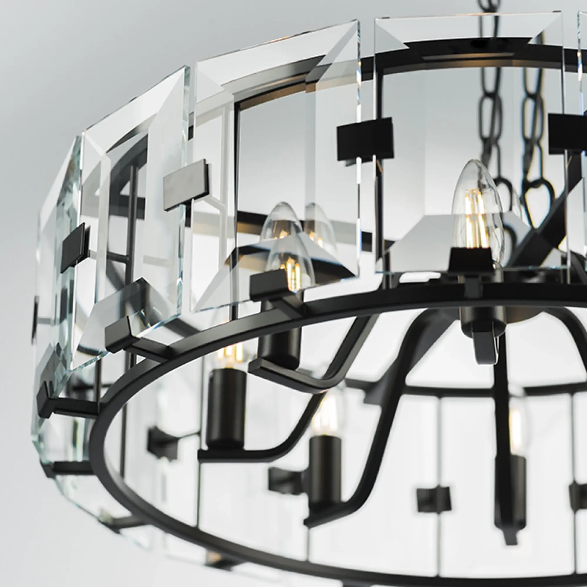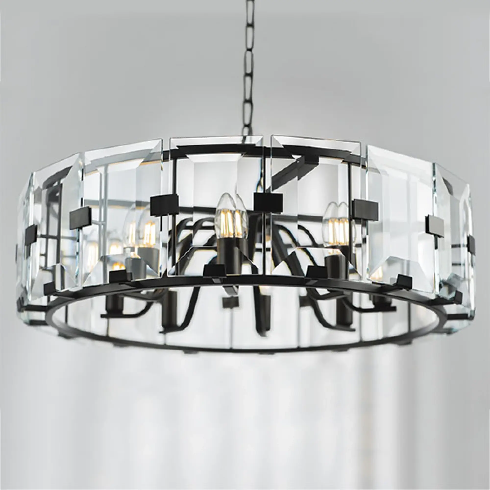 Высота min-max (см): 40-180; Ширина (см): 67; Вес (кг): 11,1; Кол-во ламп: 8xE14; Мощность max (W): 40; Цвет основания/цвет стекла или абажура: Matt Black/Clear Class