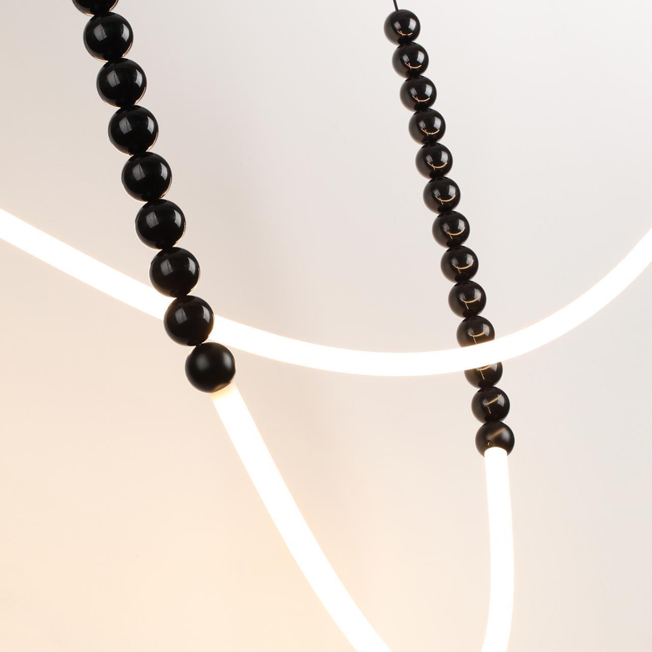 Monella ― большая линия светильников оригинальной формы в легком игривом дизайне с использованием белых полированных шариков из акрила. В светильнике используются необычные фиксаторы к потолку в виде россыпи маленьких металлических шариков, которые можно расположить на любом удалении от центра светильника и, таким образом, создать свою форму.
