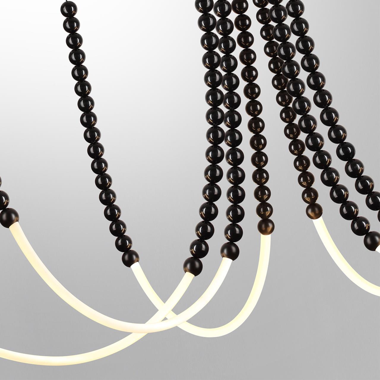 Monella ― большая линия светильников оригинальной формы в легком игривом дизайне с использованием белых полированных шариков из акрила. В светильнике используются необычные фиксаторы к потолку в виде россыпи маленьких металлических шариков, которые можно расположить на любом удалении от центра светильника и, таким образом, создать свою форму.