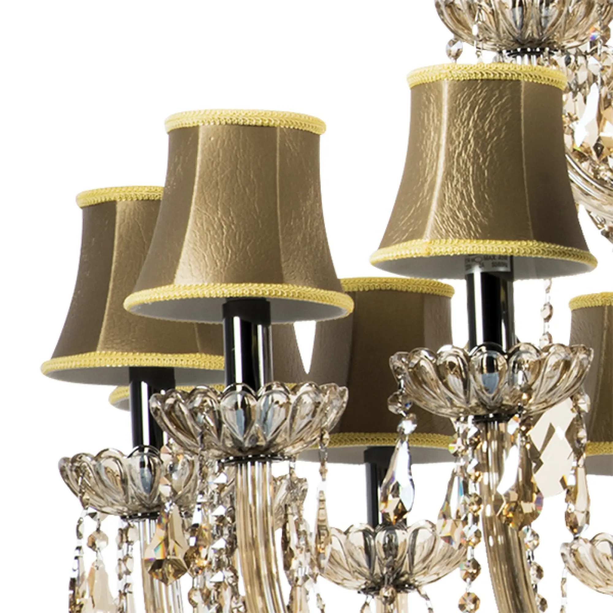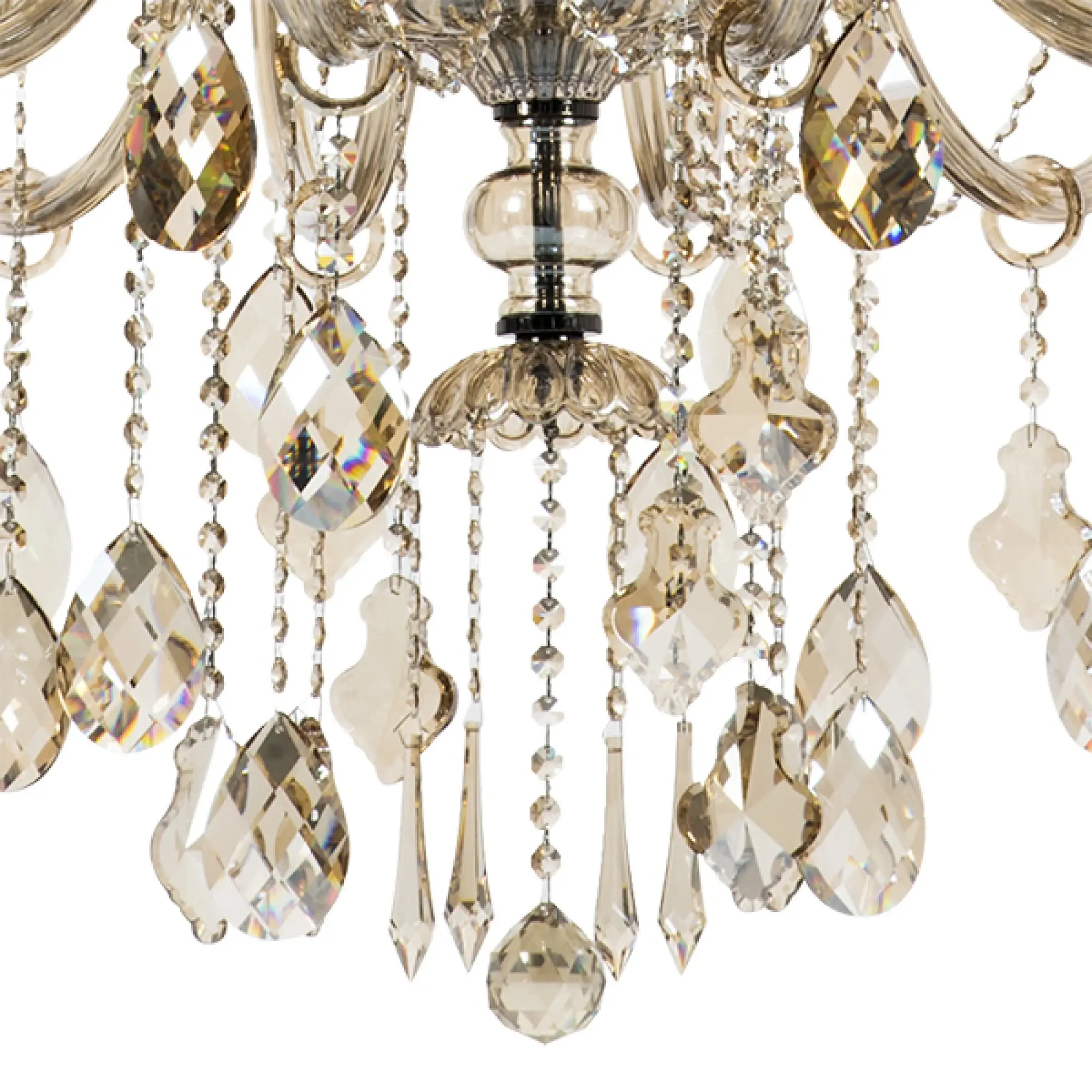 Высота min-max (см): 190-290; Ширина (см): 130; Вес (кг): 52; Кол-во ламп: 28xЕ14; Мощность max (W): 40; Цвет основания/цвет стекла или абажура: Tinted gold / Cognac cristal;