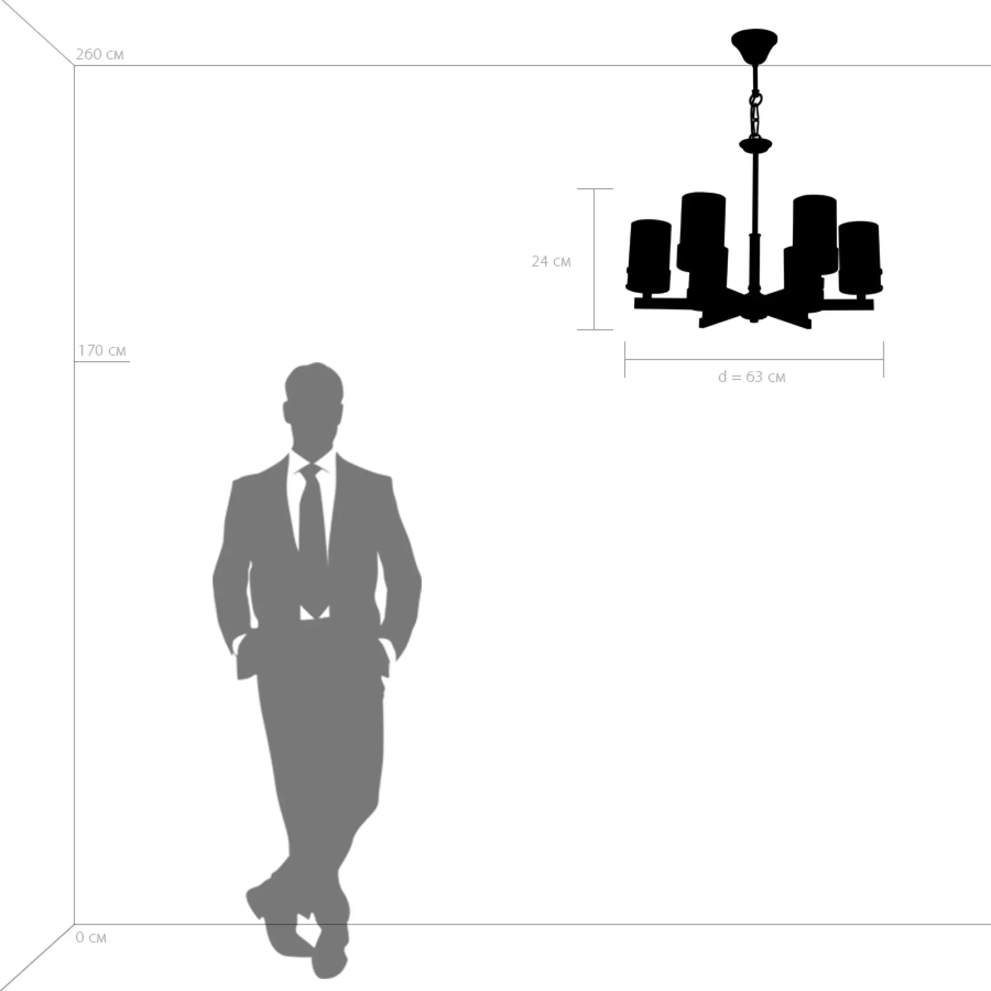 Высота min-max (см): 75-128; Ширина (см): 63; Вес (кг): 5,6; Кол-во ламп: 6хЕ14; Мощность max (W): 40; Цвет основания/цвет стекла или абажура: Black+Gold/While;
