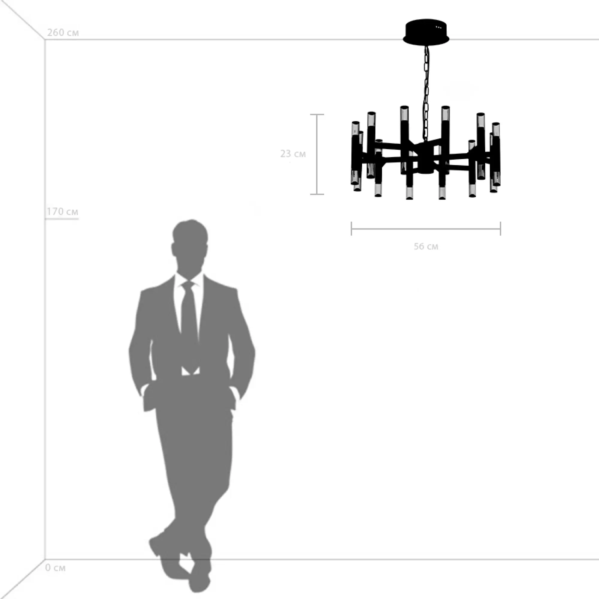 Высота min-max (см): 30-150; Диаметр (см): 56; Вес (кг): 4,5; Кол-во ламп: LED ; Мощность max (W): 76; Световой поток: 3148LM; Цвет основания/цвет стекла или абажура: Sans black+gold; 3000K