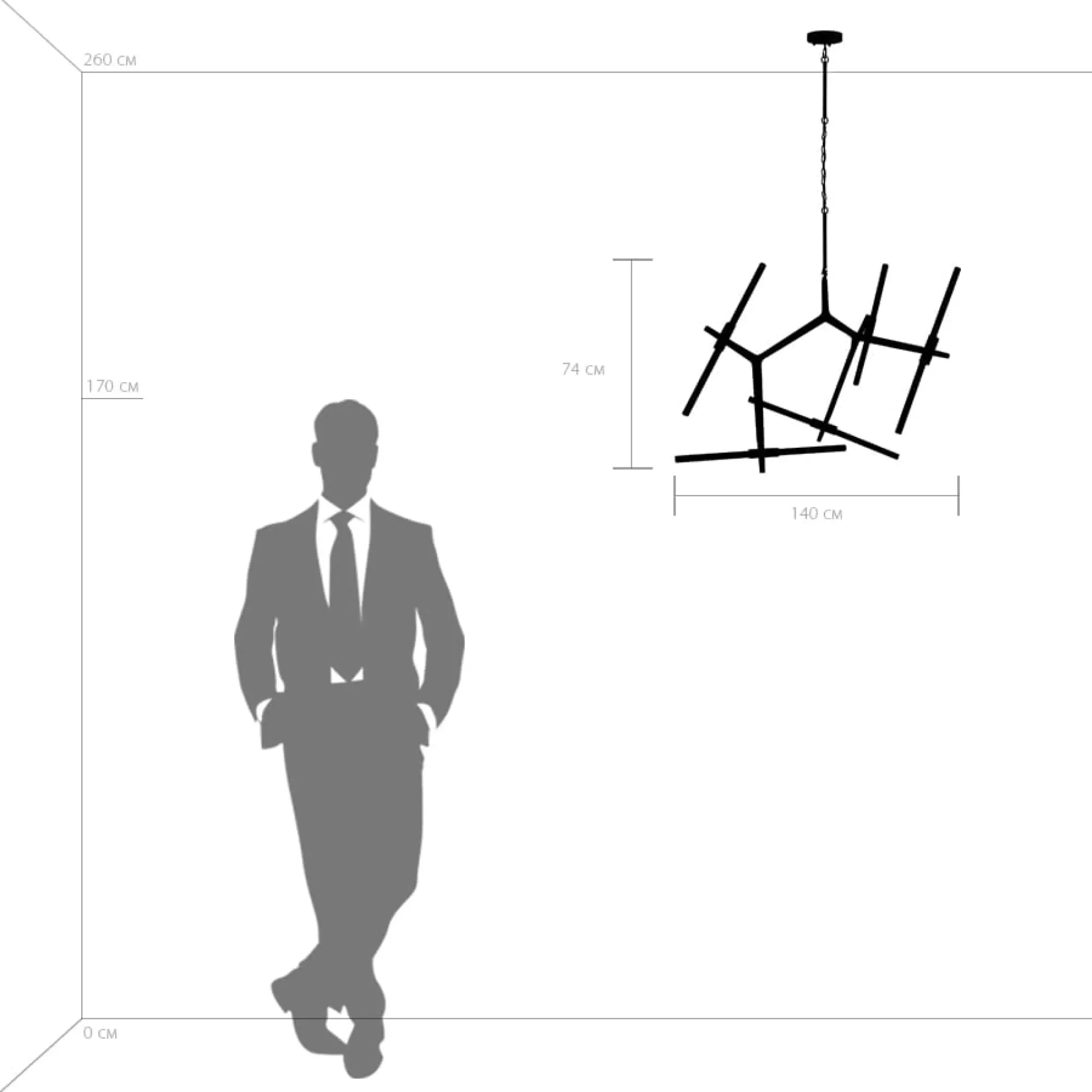 Высота min-max (см): 105-223; Длина (см): 140; Вес (кг): 4,6; Кол-во ламп: 10xG9; Мощность max (W): 6 (led); Цвет основания/цвет стекла или абажура: Matt Black;