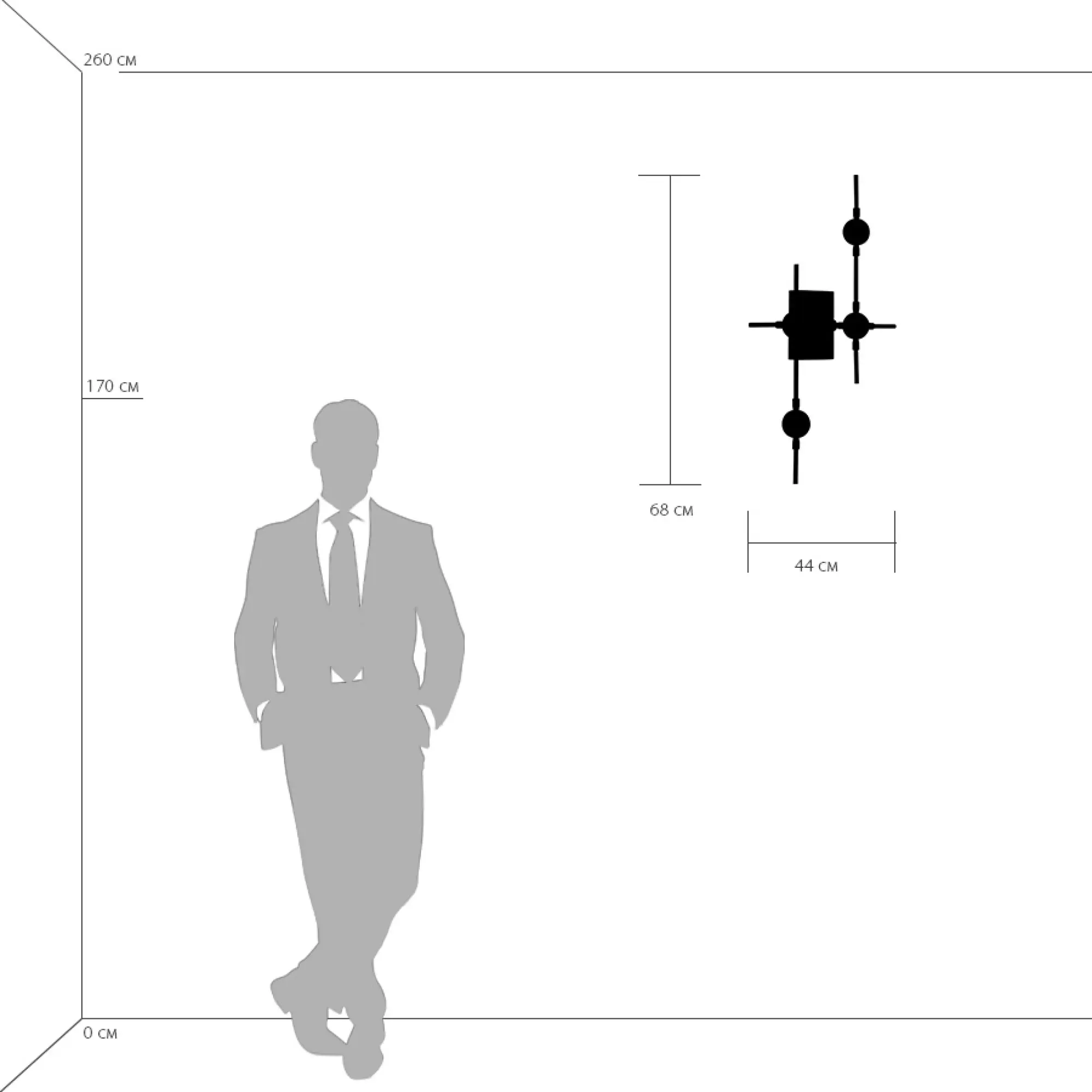 Высота min-max (см): 68; Ширина (см): 44; Глубина (см): 10; Вес (кг): 1,2; Кол-во ламп: LED ; Мощность max (W): 5Wх4 ; Цвет основания/цвет стекла или абажура: Matt Black/Goldl; Световой поток: 1600 LM