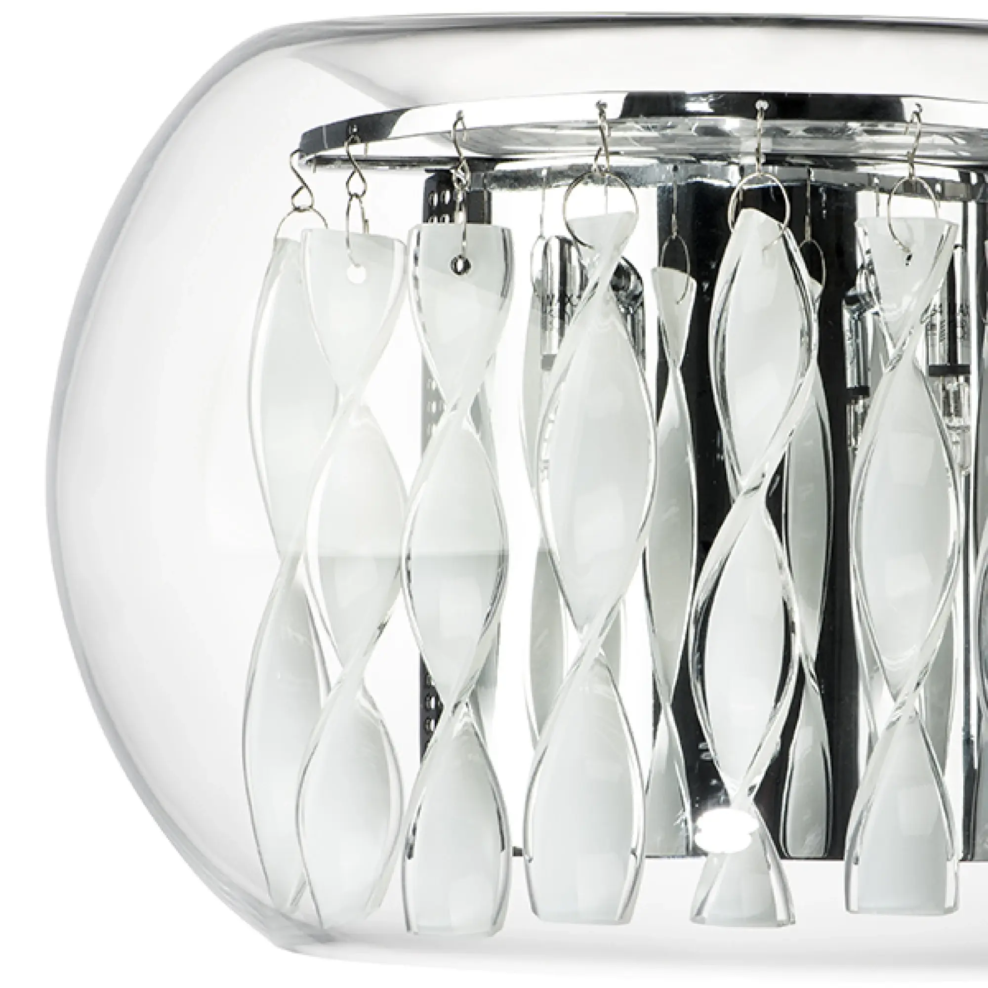Высота min-max (см): 23; Ширина (см): 30; Глубина (см): 15; Вес (кг): 2,1; Кол-во ламп: 3xG4; Мощность max (W): 20; Напряжение питания: 12V; Цвет основания/цвет стекла или абажура: Chrome / Clear crystal;