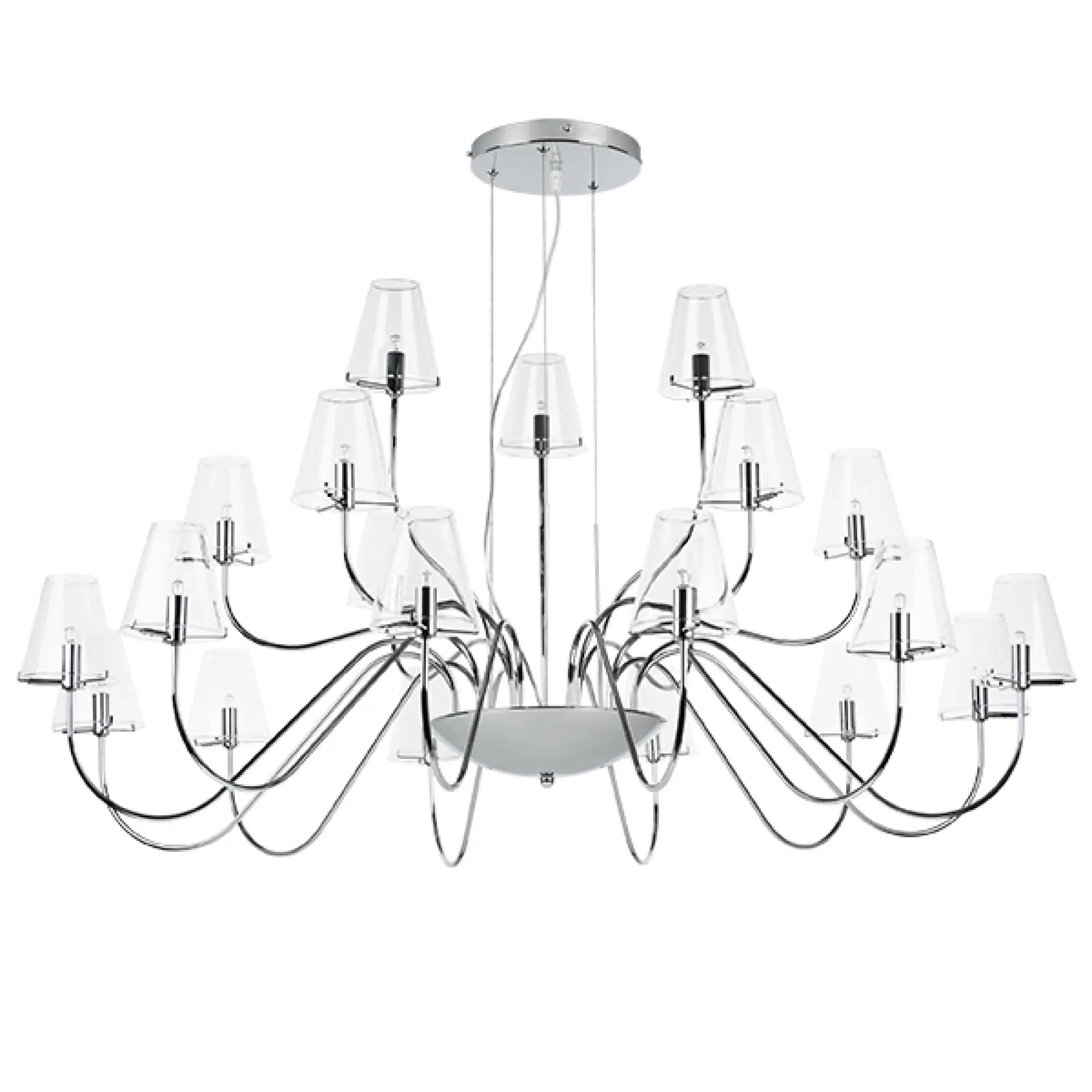 Высота min-max (см): 70-140; Ширина (см): 125; Вес (кг): 11,6; Кол-во ламп: 21xG9; Мощность max (W): 40; Цвет основания/цвет стекла или абажура: Chrome / Clear crystal;