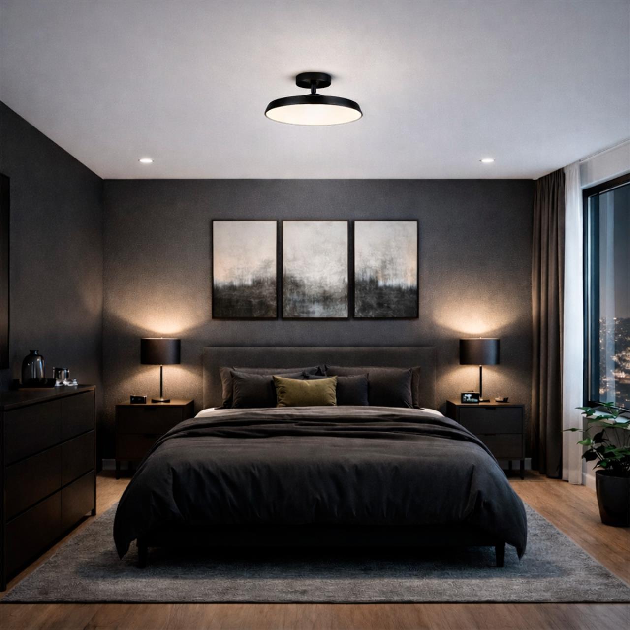 Светильник серии MIRA BLACK — это стилизованная под техно-стиль модель светильника типа «тарелка». Корпус светильника изготовлен из металла и имеет лакокрасочное покрытие черного цвета. Рассеиватель изготовлен из пластика с высокими светопропускающими характеристиками. Рассеиватель вкладывается в плафон и фиксируется под собственным весом, поэтому модель предназначена только для установки на потолок. У светильника имеется стойка с поворотным механизмом. Благодаря этому можно изменять угол наклона светильника в соответствии с вашими задачами или предпочтениями, таким образом добавляя строгому минималистичному пространству игривости или нюансности.