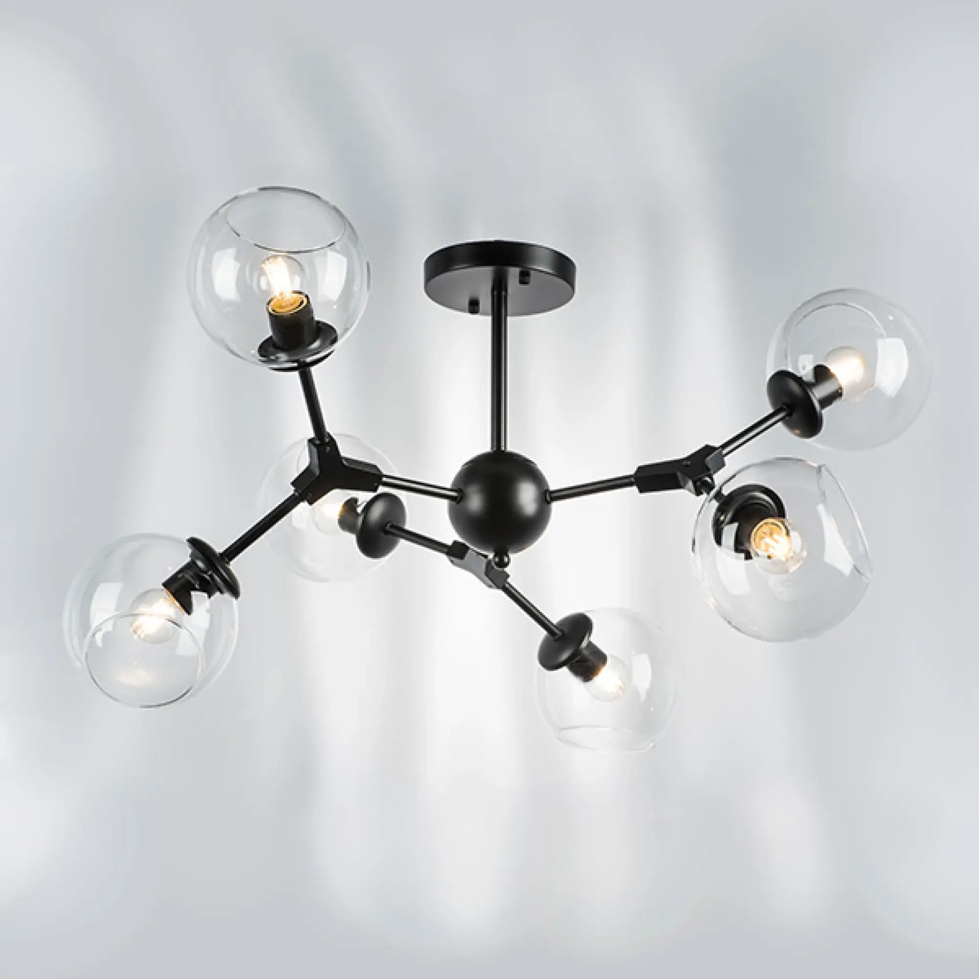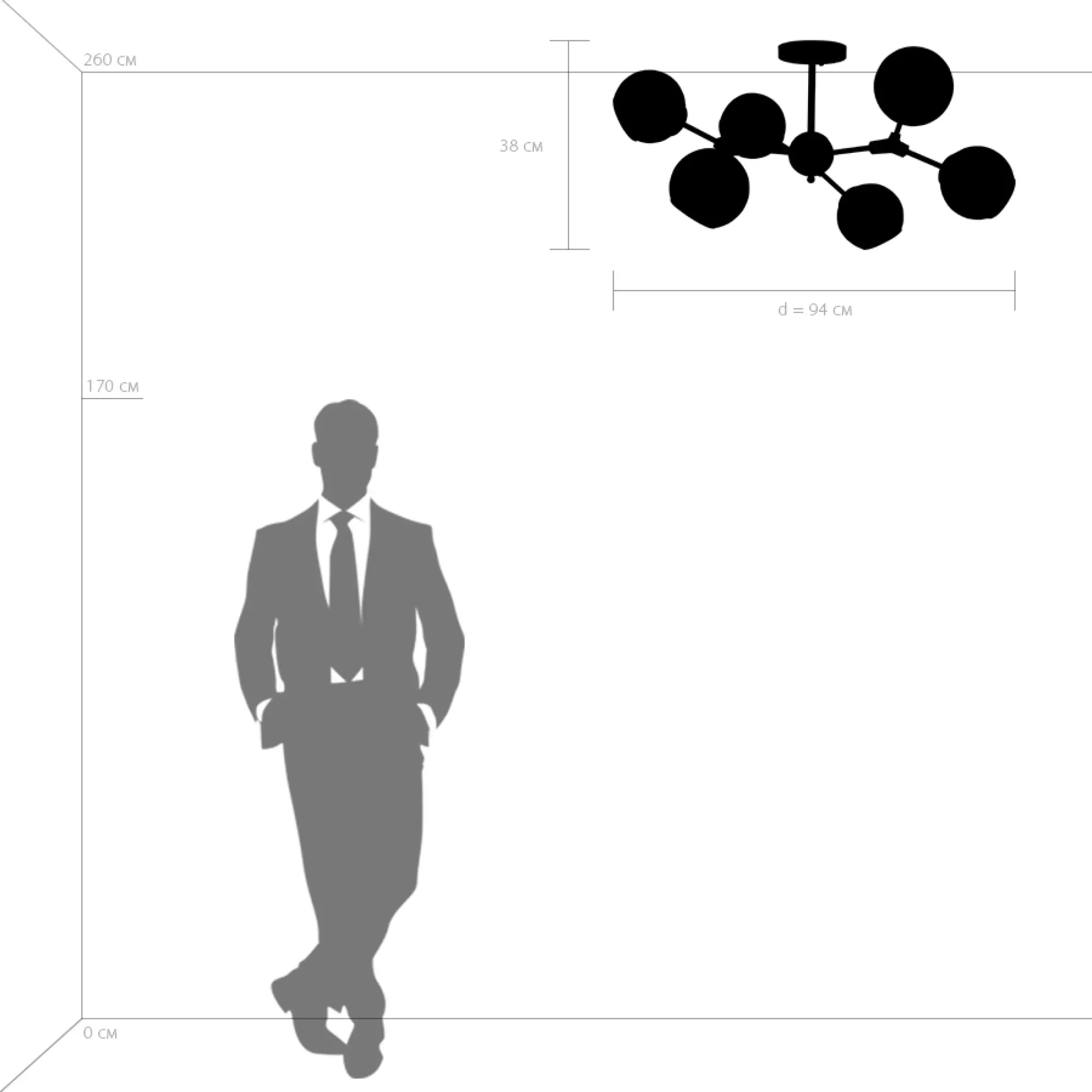 Высота (см): 38; Ширина (см): 94; Вес (кг): 3,1; Кол-во ламп: 6хE27; Мощность max (W): 40; Цвет основания/цвет стекла или абажура: Black;