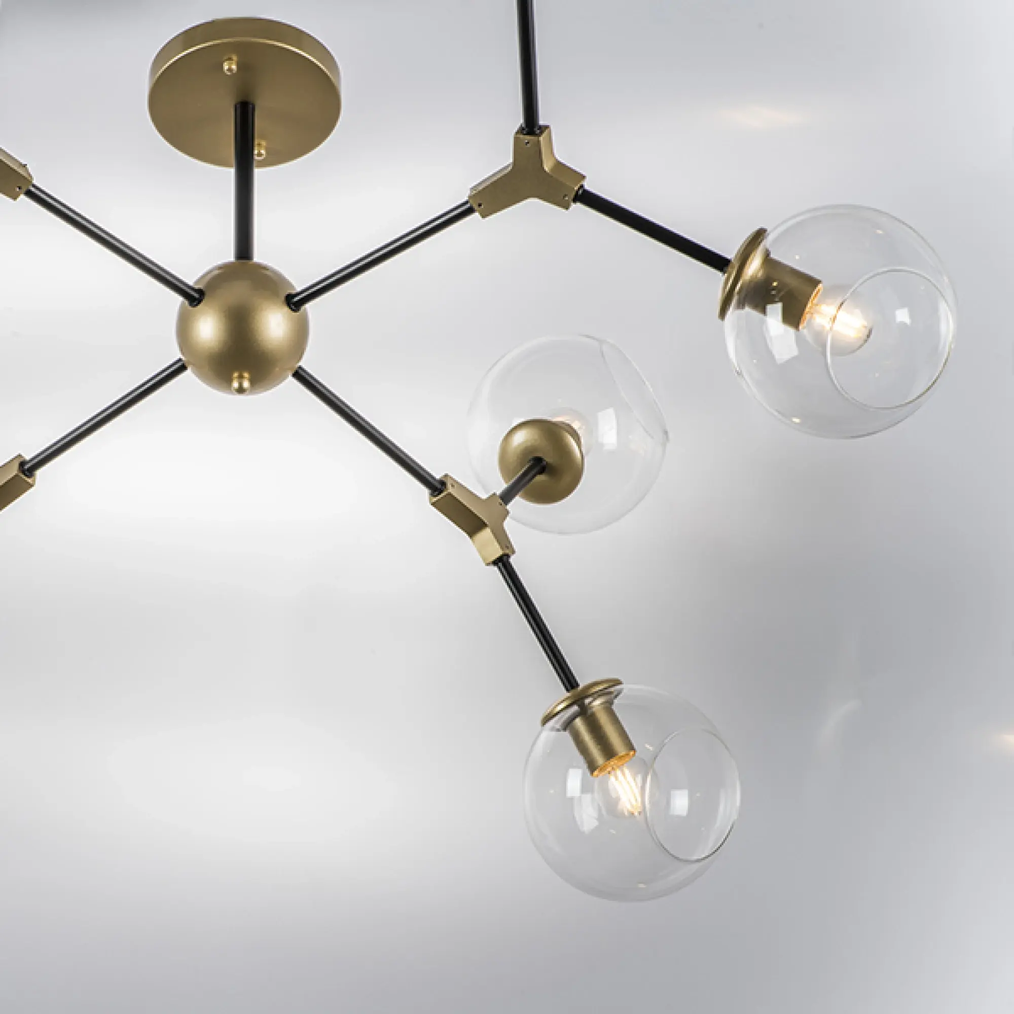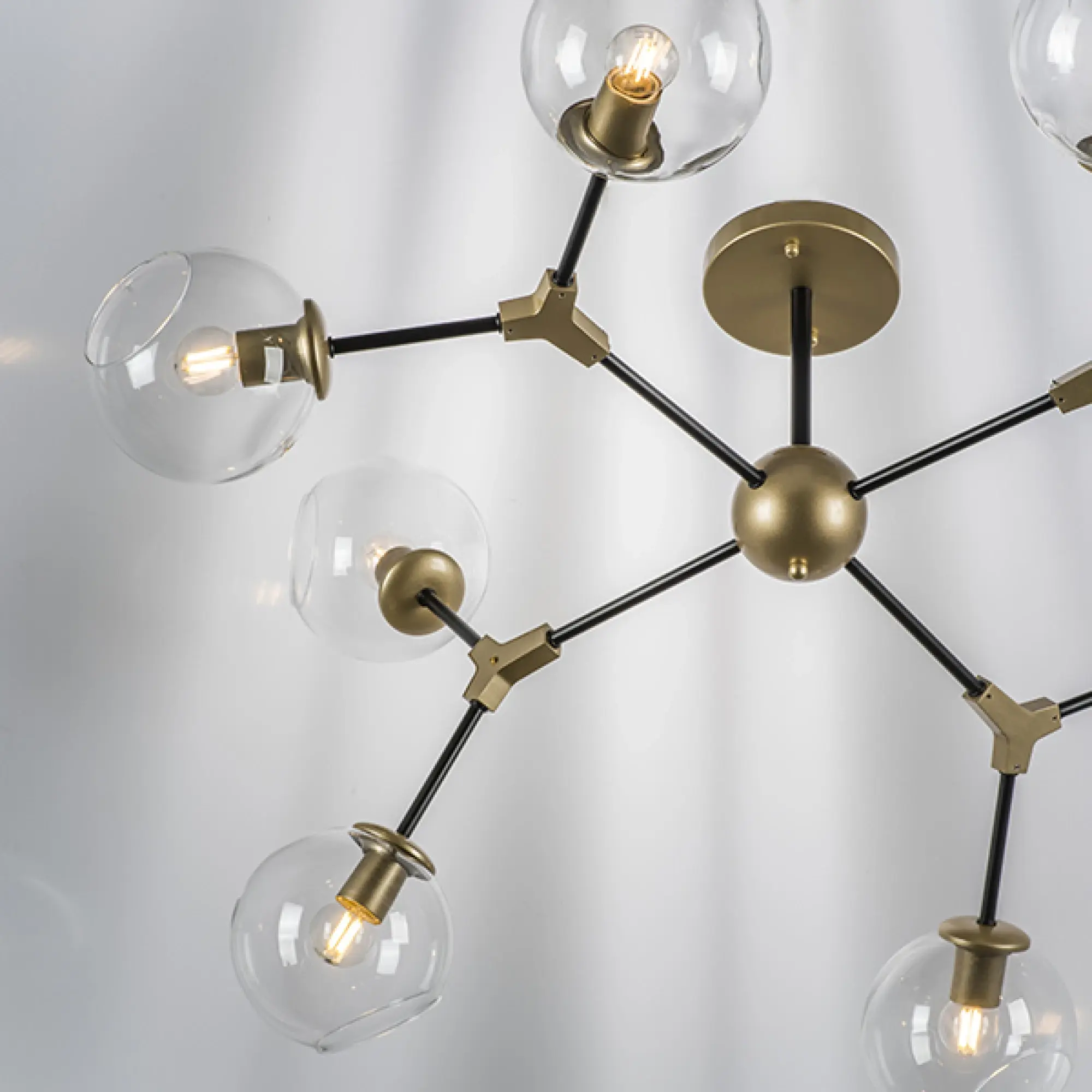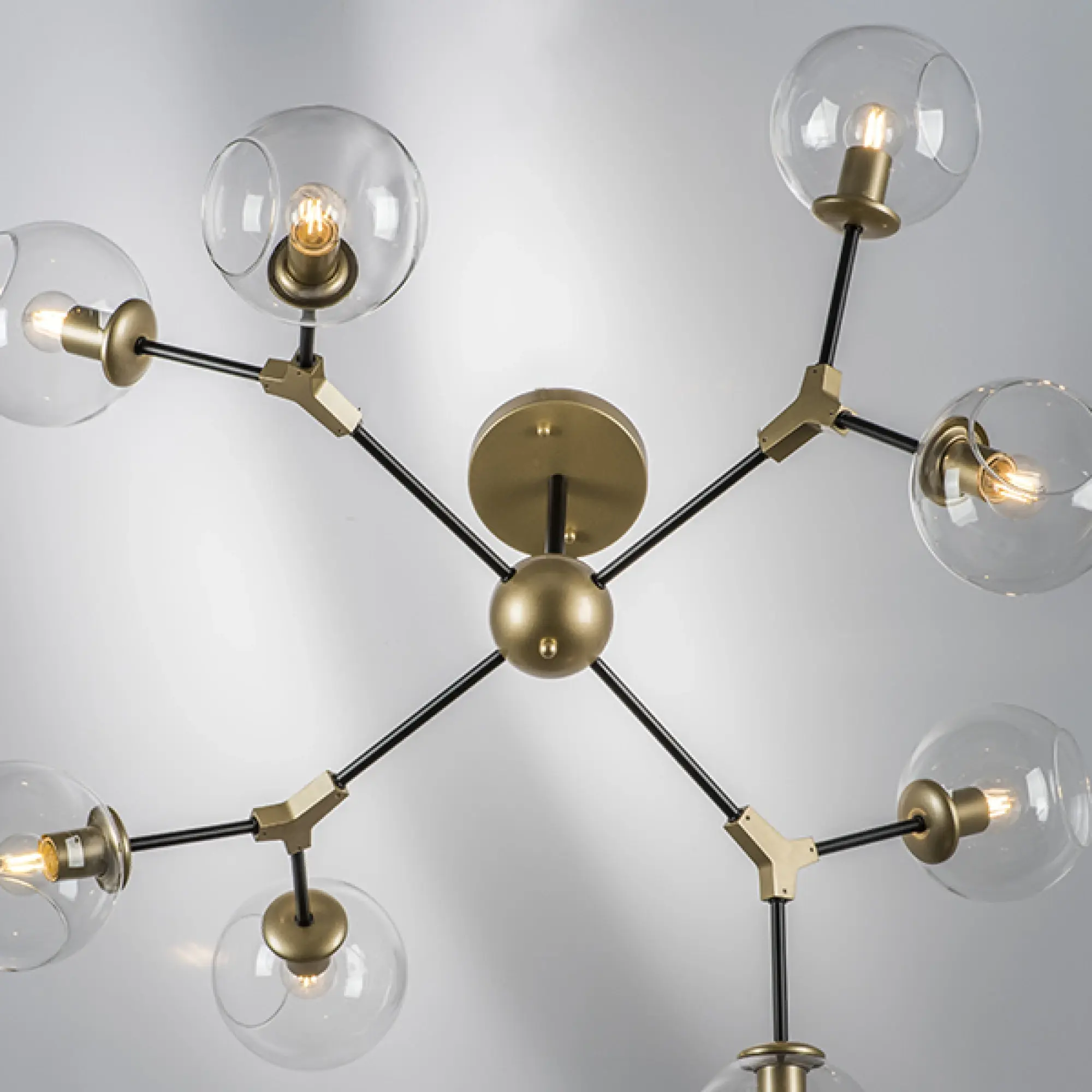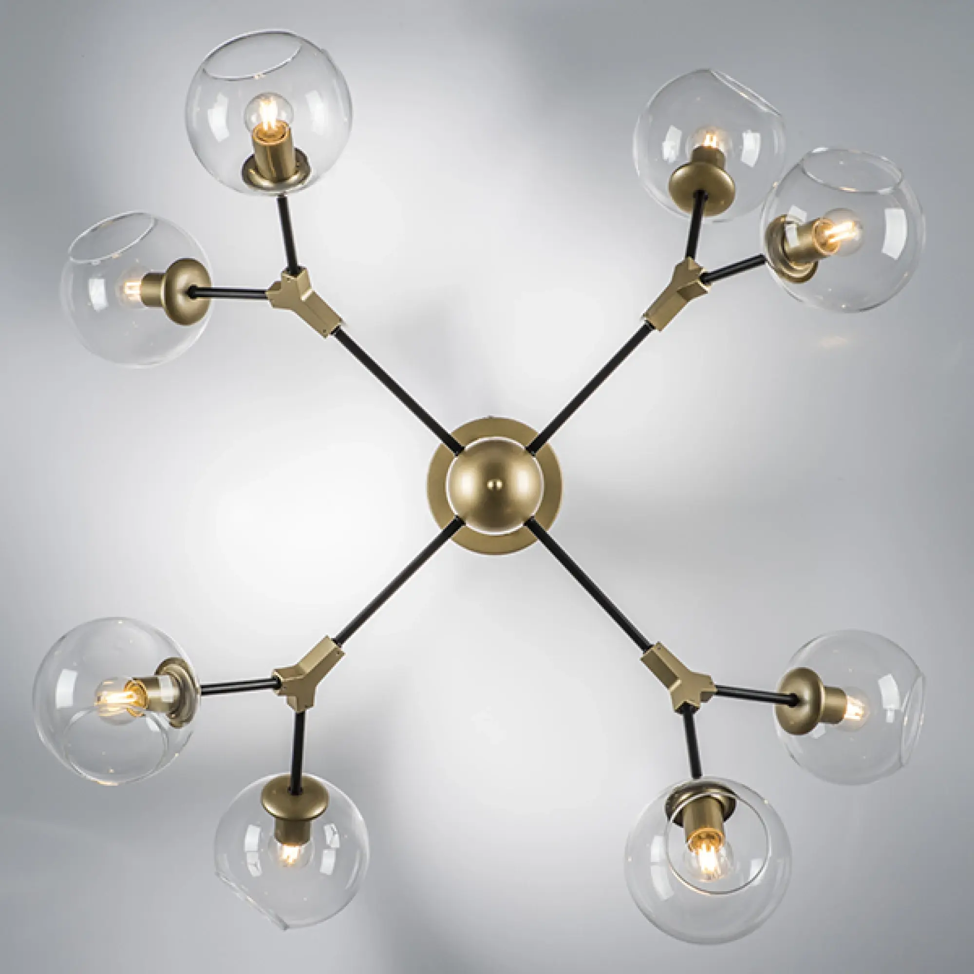 Высота min-max (см): 38; Ширина (см): 112; Вес (кг): 4.1; Кол-во ламп: 8xE27; Мощность max (W): 40; Цвет основания/цвет стекла или абажура: Gold/Black;