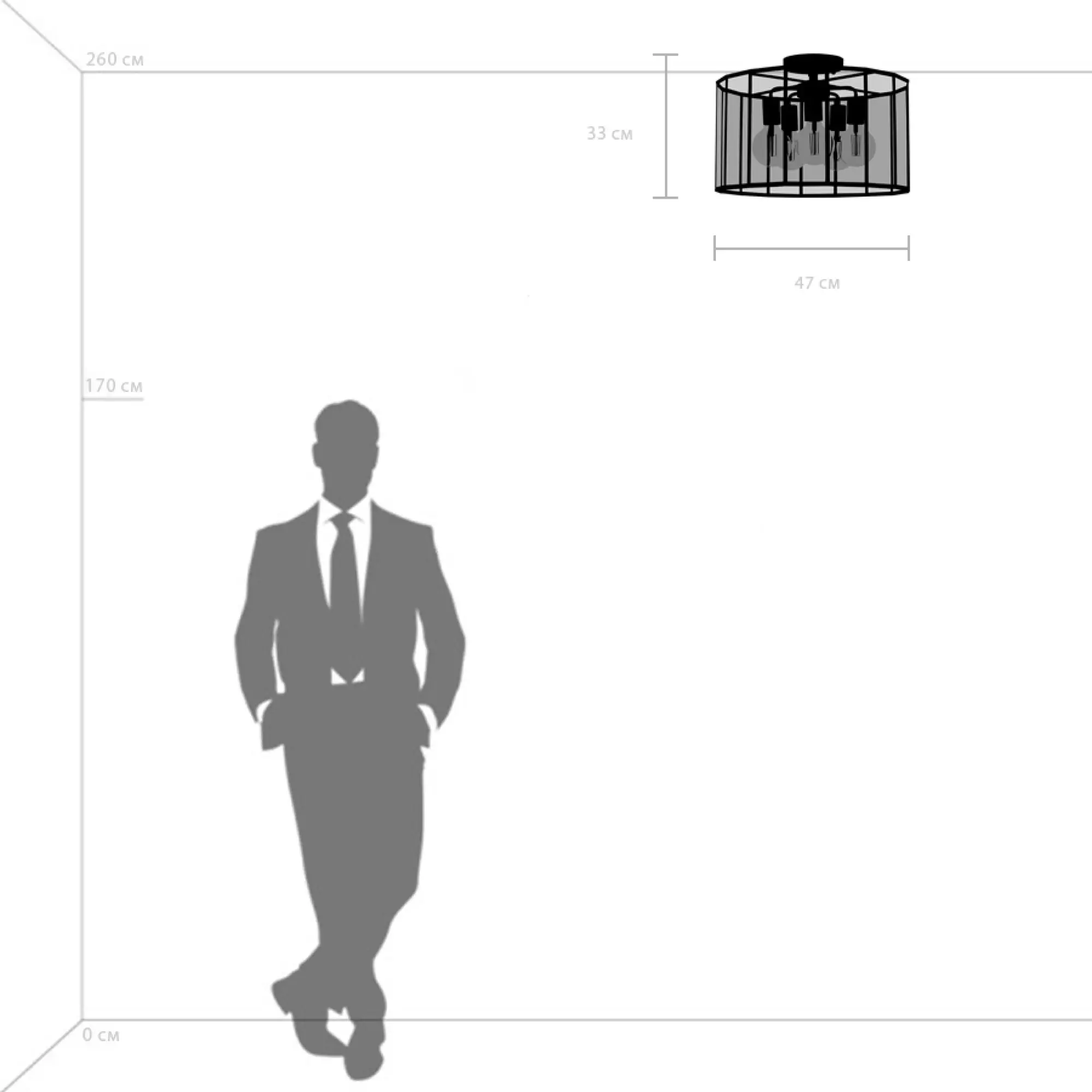 Высота min-max (см): 33; Ширина (см): 47; Вес (кг): 4,6; Кол-во ламп: 5хE27; Мощность max (W): 40; Цвет основания/цвет стекла или абажура: Черный матовый/прозрачный