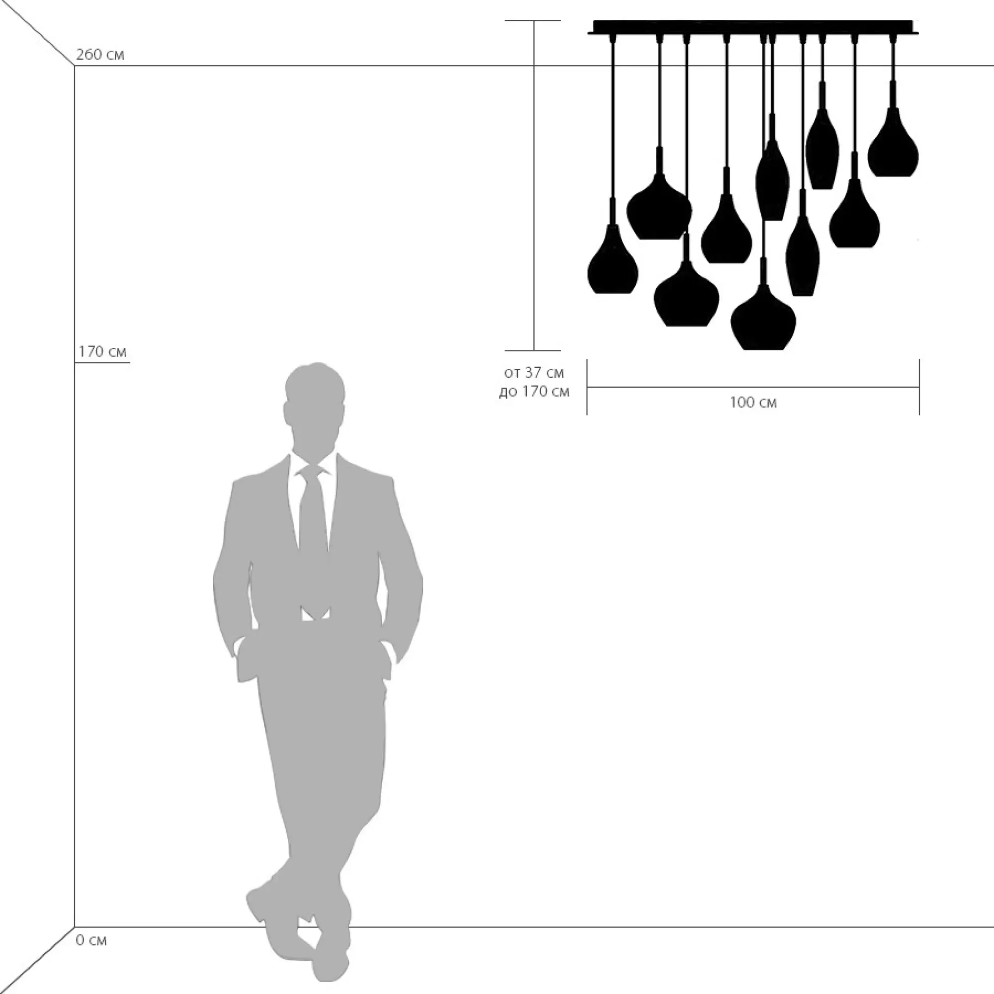 Высота min-max (см): 37-140; Ширина (см): 100; Вес (кг): 11,9; Кол-во ламп:12xG9 ; Мощность max (W): 25; Цвет основания/цвет стекла или абажура: chrome/amber, smoky, olive, plum ;