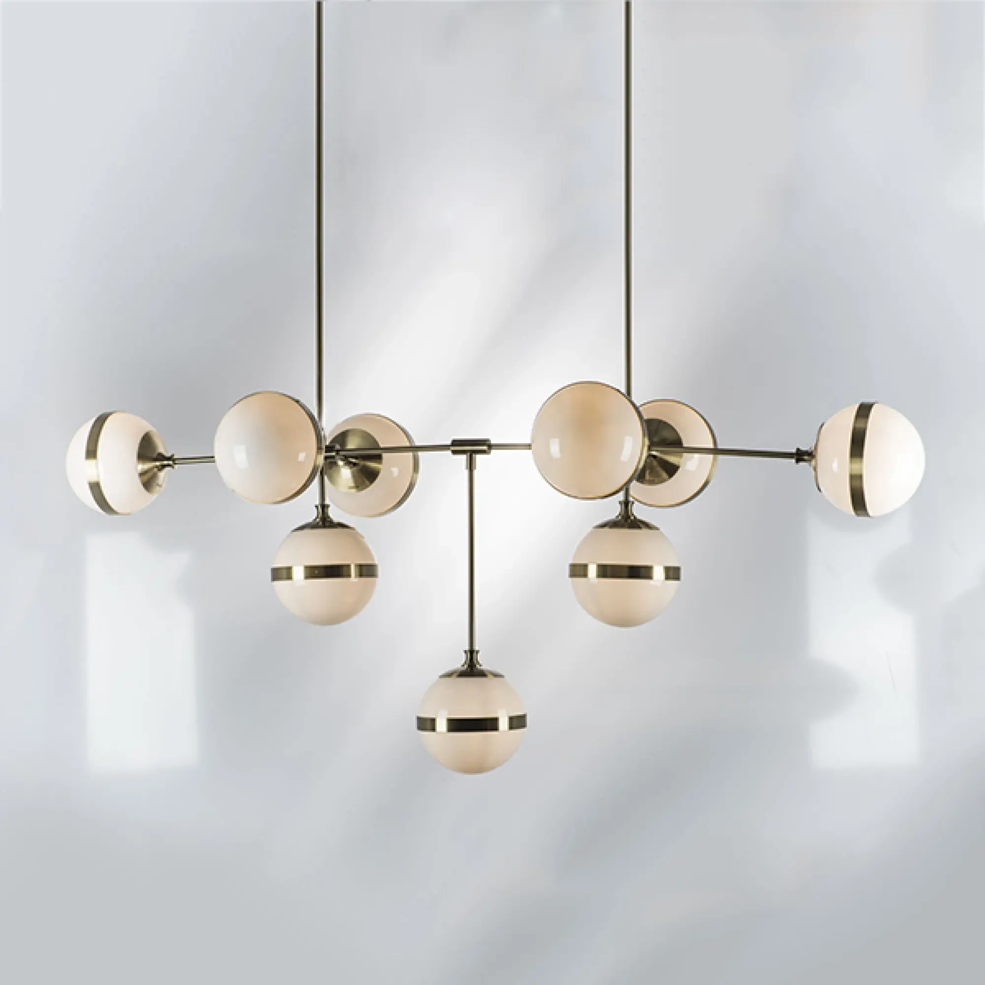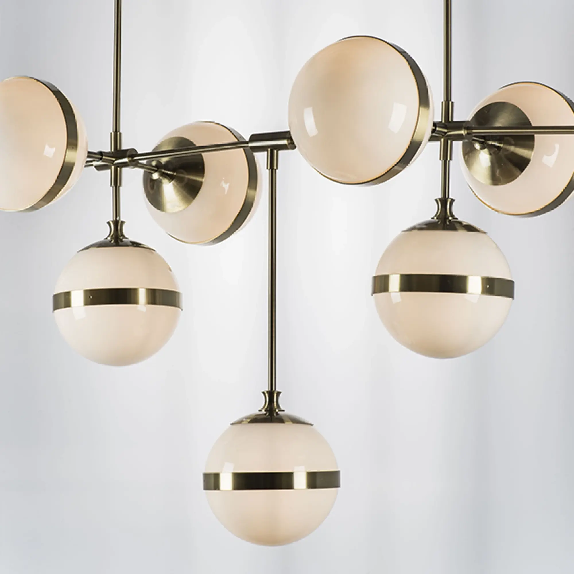 Высота min-max (см): 122; Ширина (см): 172*60; Вес (кг): 11,7; Кол-во ламп: 9хE14; Мощность max (W): 40; Цвет основания/цвет стекла или абажура: electroplating bronze/white;