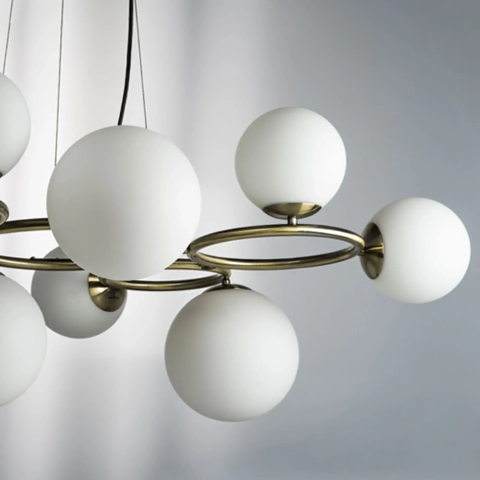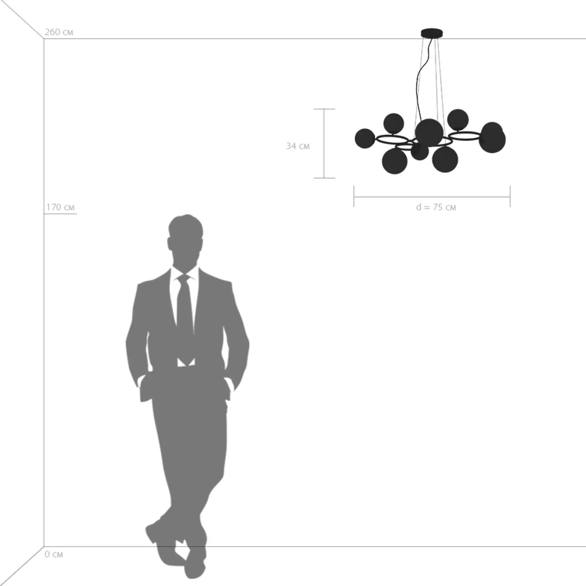 Высота min-max (см): 34-150; Ширина (см): 110*75; Вес (кг): 5; Кол-во ламп: 9хG9; Мощность max (W): 40; Цвет основания/цвет стекла или абажура: Латунь/белый;