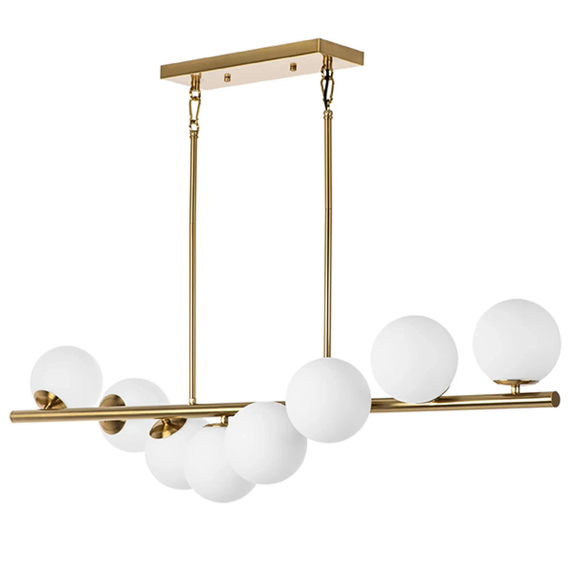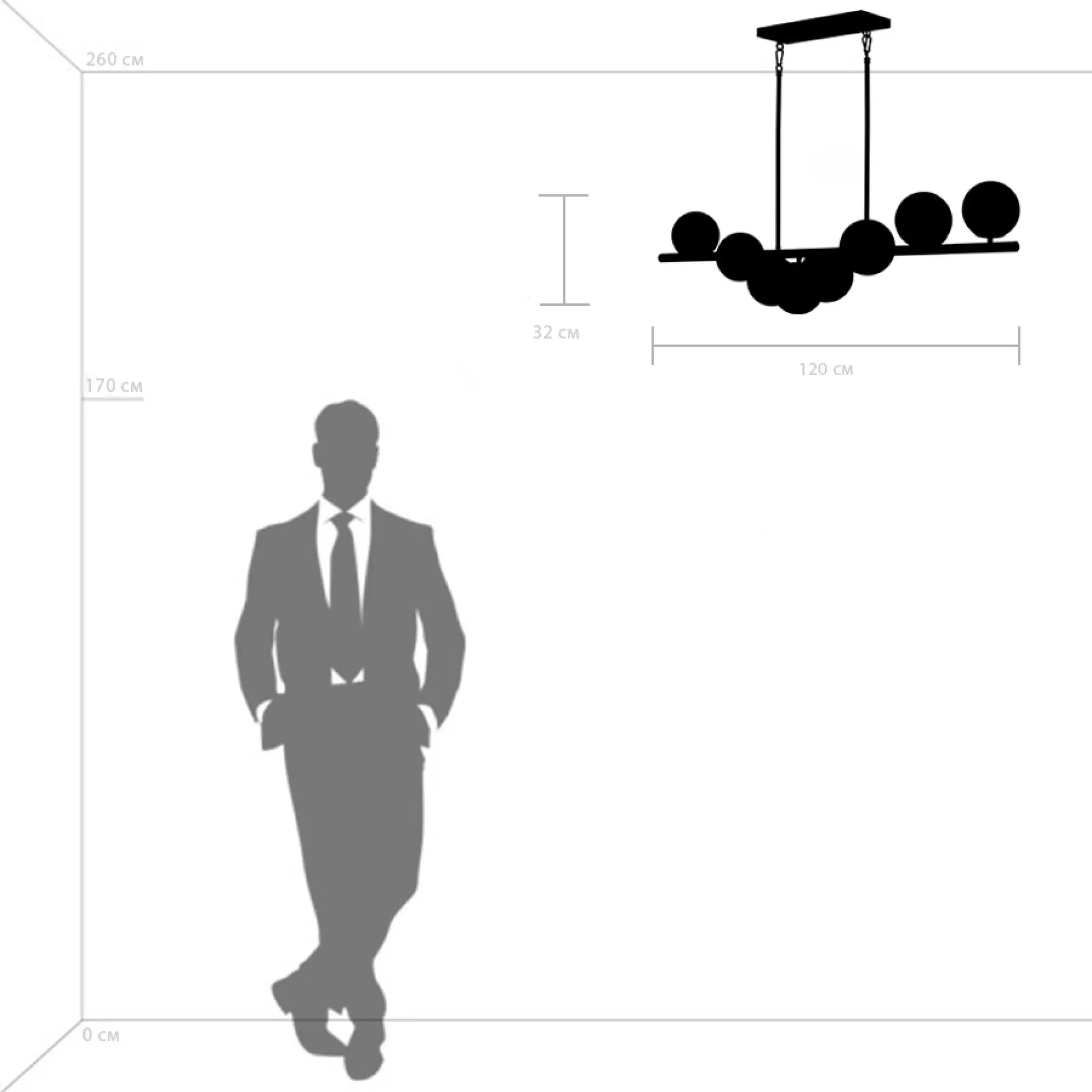 Высота min-max (см): 36-110; Ширина (см): 120; Вес (кг): 4,8; Кол-во ламп: 8хЕ14; Мощность max (W): 40; Цвет основания/цвет стекла или абажура: Satin brass;