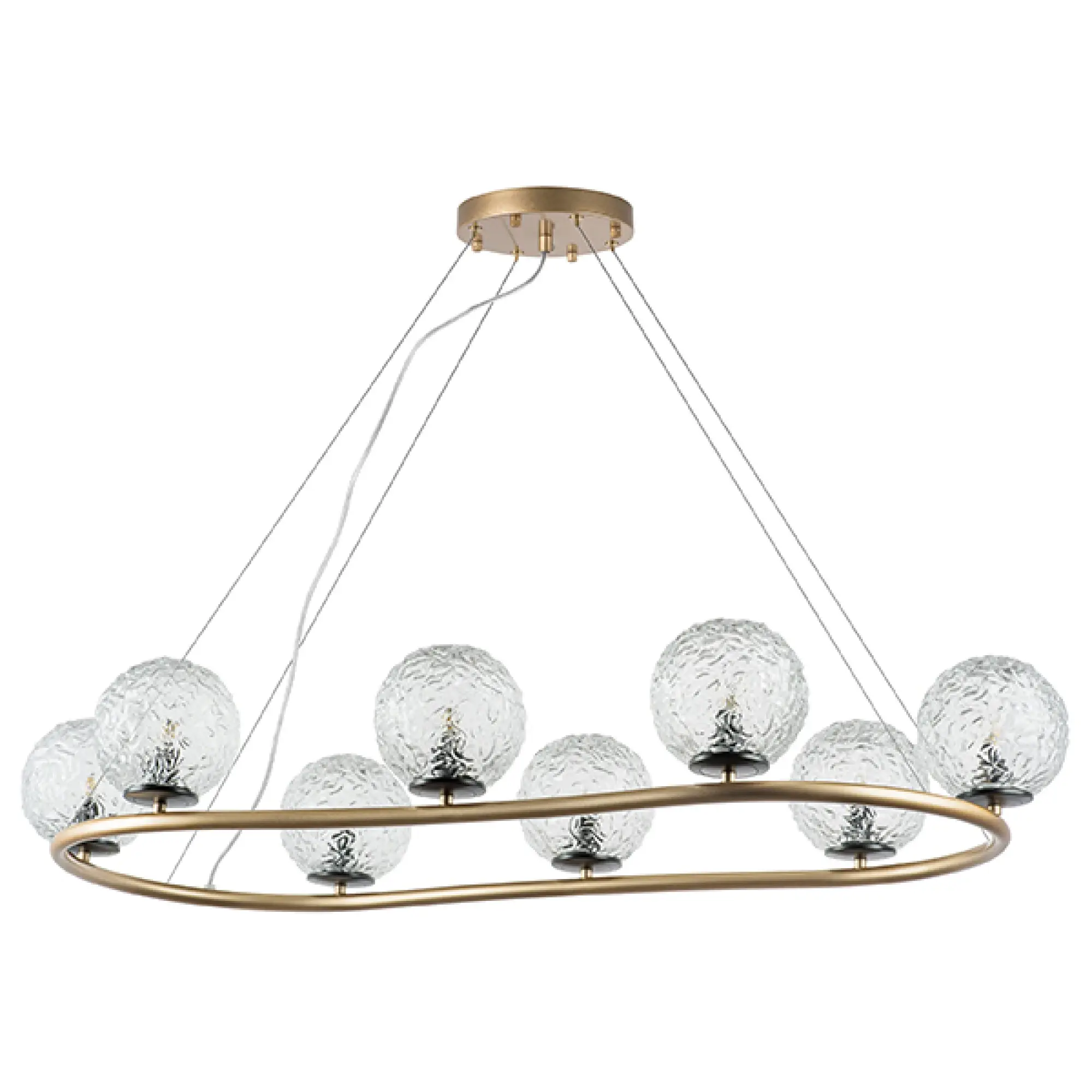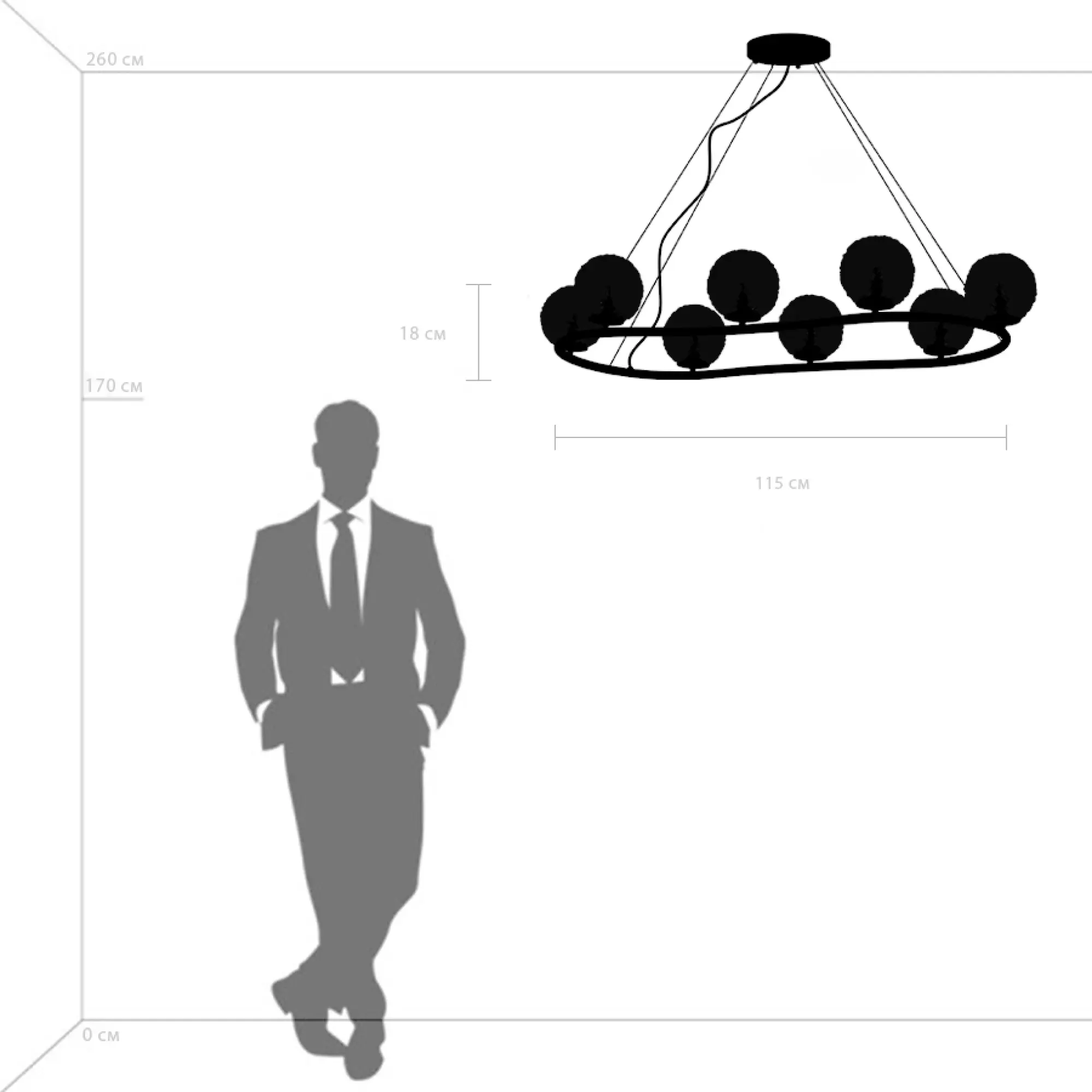 Высота min-max (см): 30-140; Ширина (см): 115*60; Вес (кг): 6,7; Кол-во ламп: 8хG9; Мощность max (W): 10 led; Цвет основания/цвет стекла или абажура: Gold/Matt Black; Особенности: в комплекте идут лампы 940452