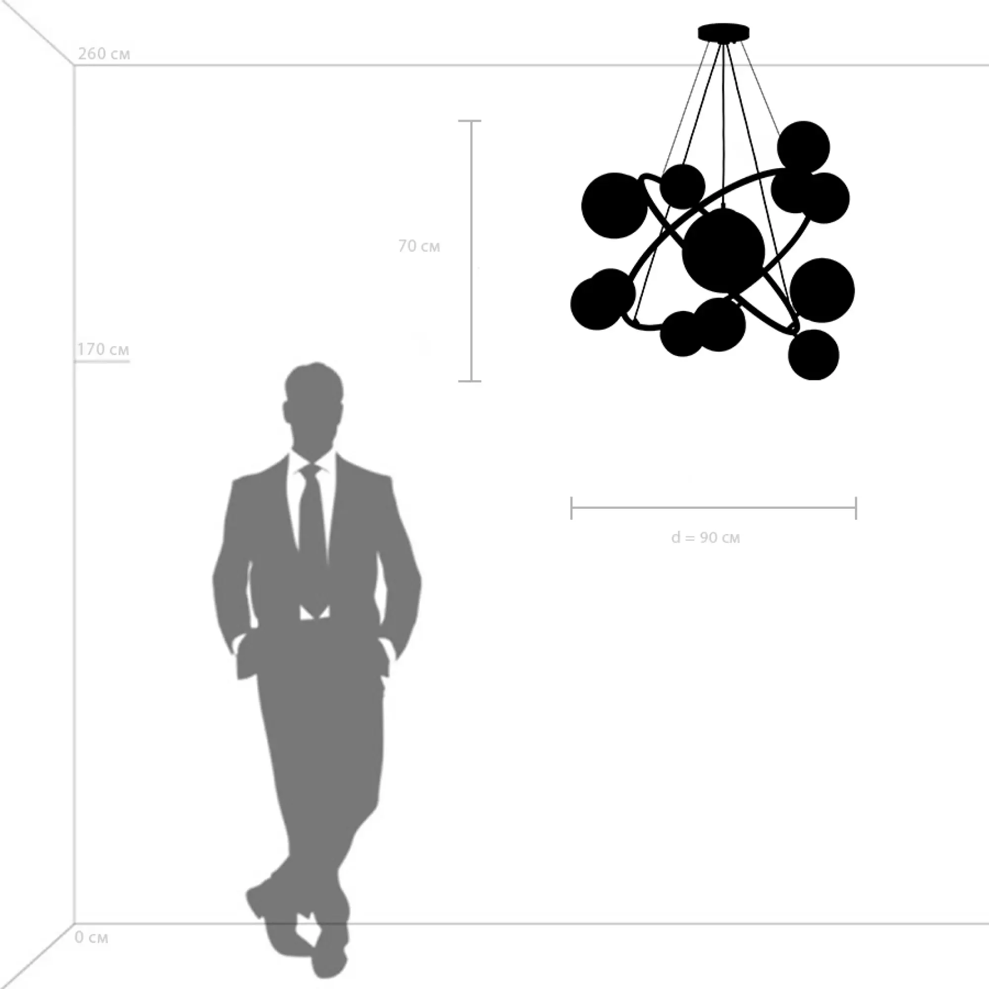 Высота min-max (см): 80-180; Ширина (см): 90; Вес (кг): 9,3; Кол-во ламп: 12хЕ14; Мощность max (W): 40; Цвет основания/цвет стекла или абажура: Matt Black;