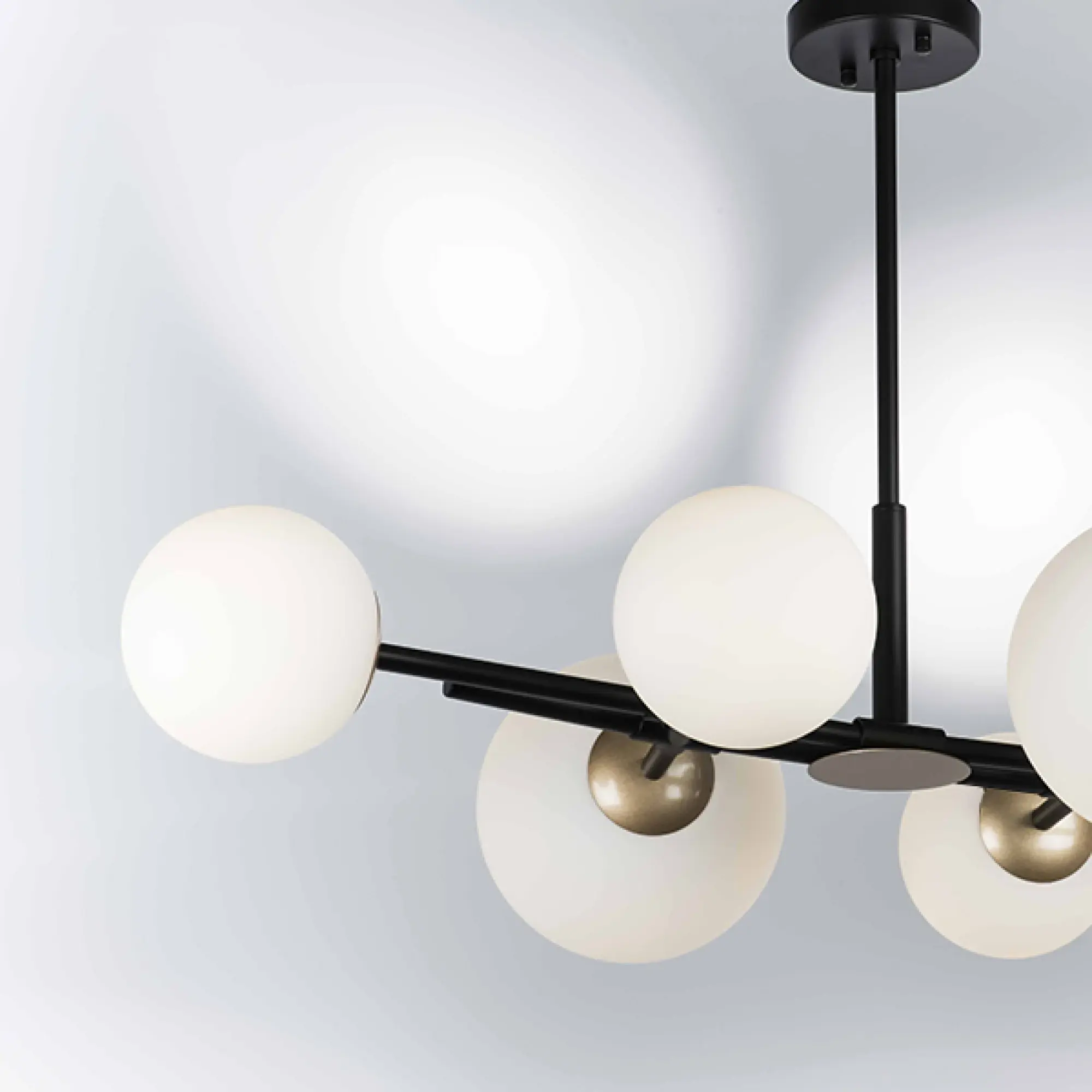 Высота min-max (см): 60-90; Ширина (см): 95*60; Вес (кг): 4,2; Кол-во ламп: 6хЕ14; Мощность max (W): 40; Цвет основания/цвет стекла или абажура: Matt Black/Gold;