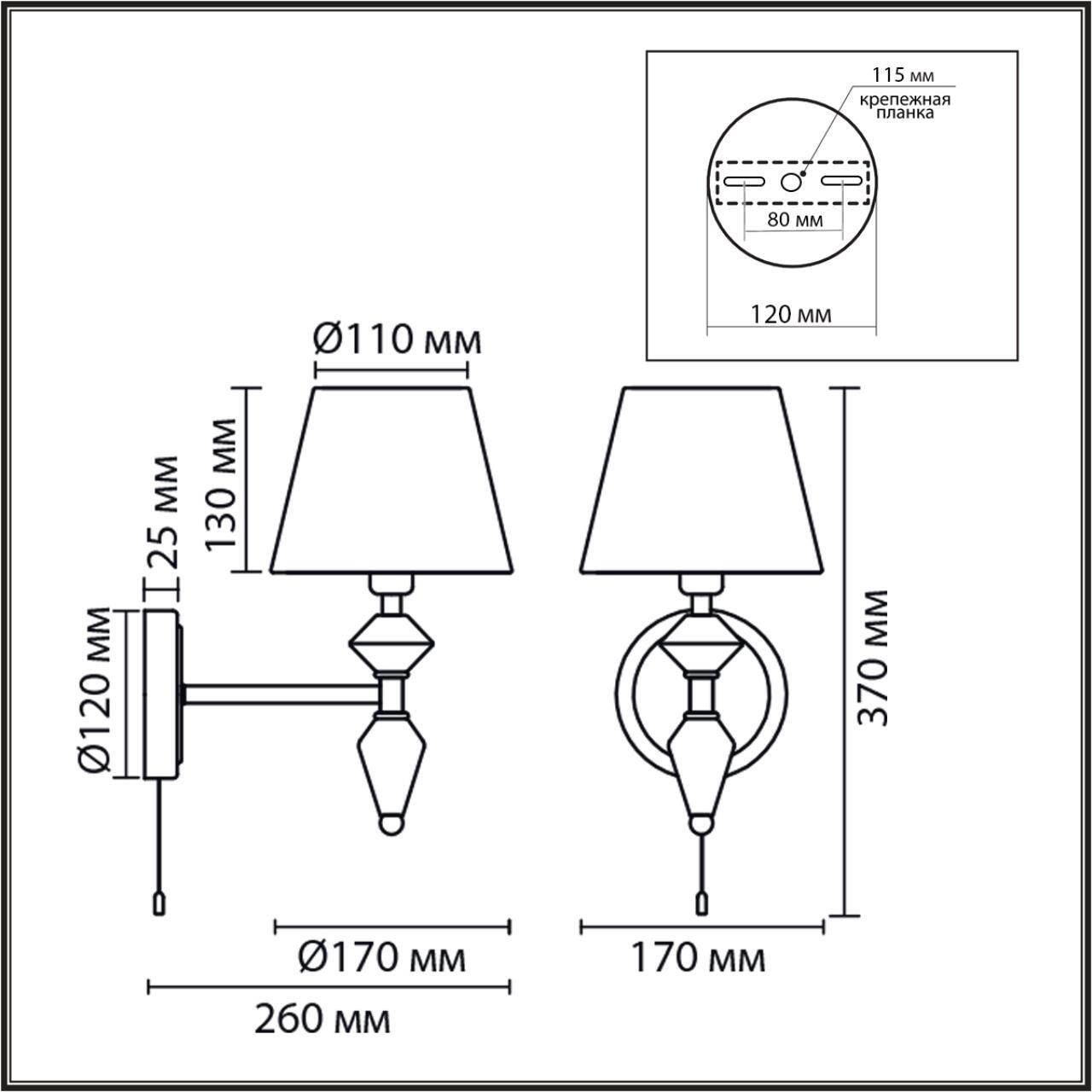 8275/1W CLASSI латунь/зеленый, металл/керамика/ткань Бра Е14 1*40W 220V VERMONT