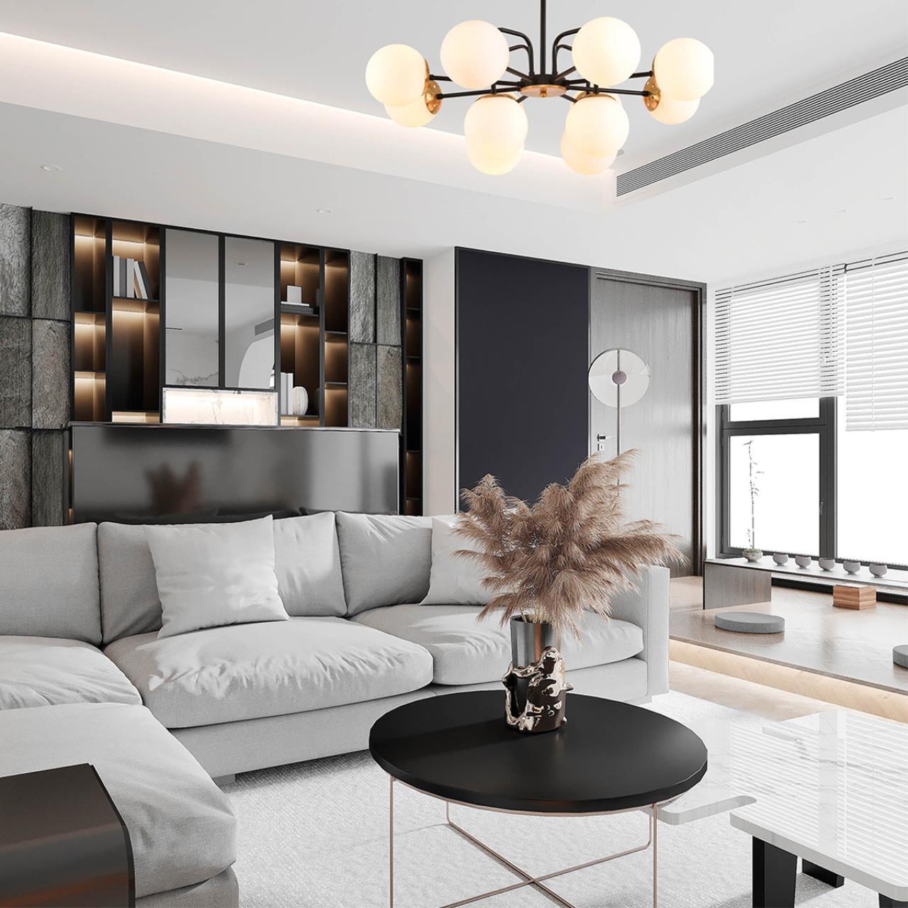 8375/12C MODERNI LN черный/латунь/белый, металл/стекло Люстра потолочная E27 12*60W 220V ELRONA