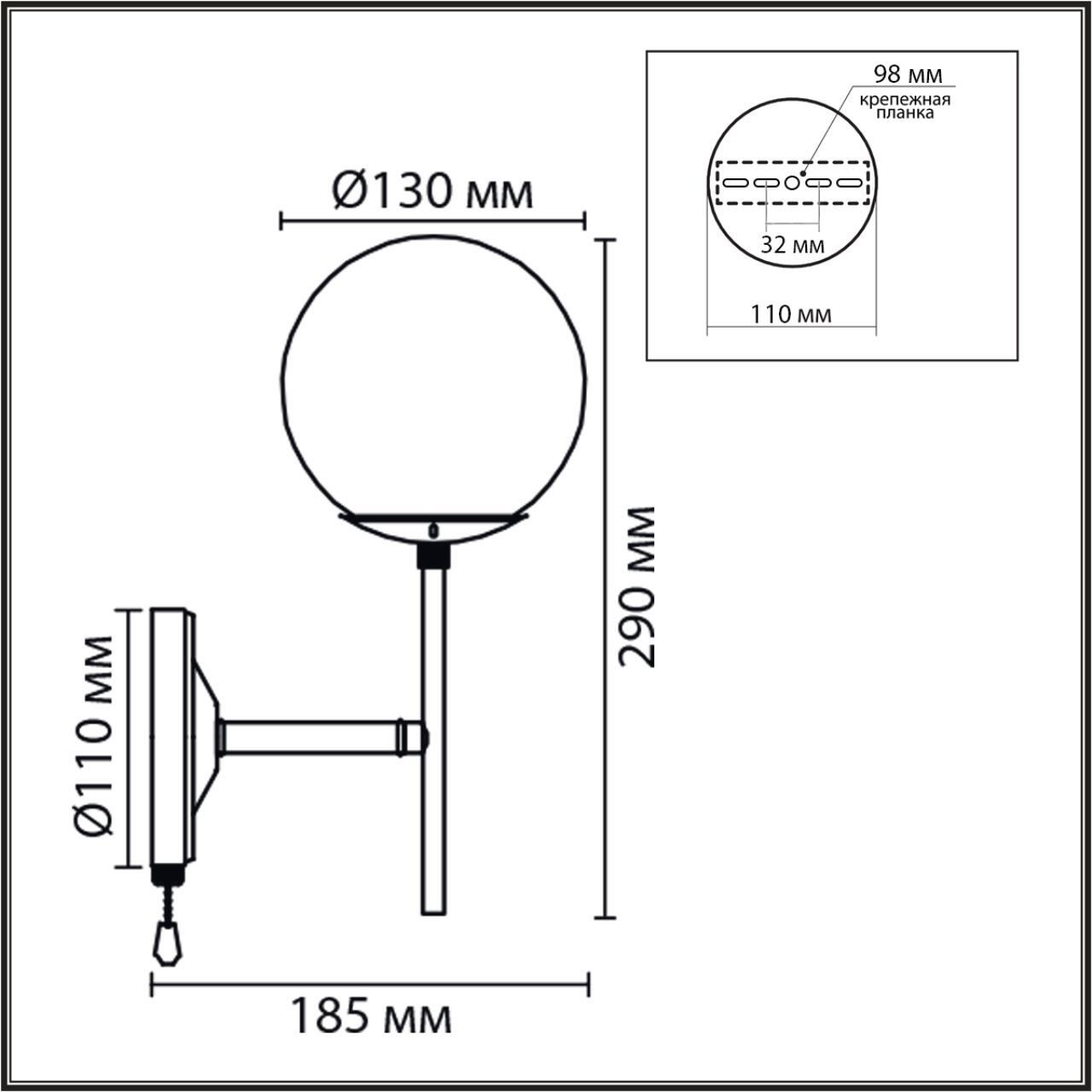 8375/1W MODERNI LN черный/латунь/белый, металл/стекло Бра E27 60W 220V ELRONA