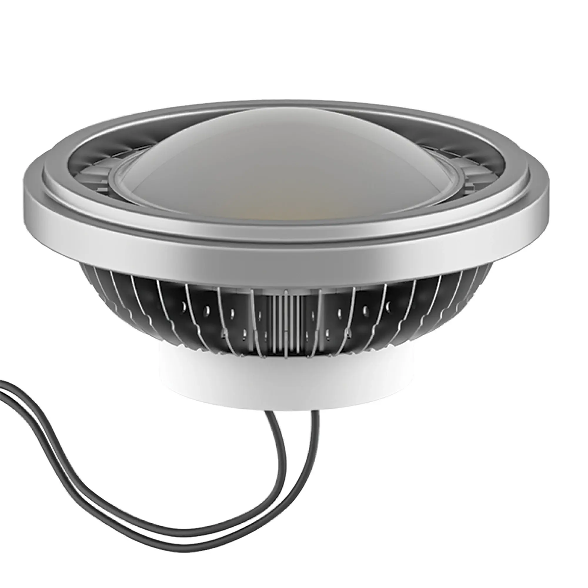 Тип: Светодиодная лампа; Напряжение (V): 220; Тип колбы: AR111 - рефлекторная, диаметр отражателя 110мм; Цоколь: без цоколя (подключается проводами); Мощность (W): 12; Эквивалентная мощность лампы накаливания (W): 100; Световой поток: 1100LM; Угол рассеивания (G):140; Особенности (Опции): матовая рассеянного света; Цветопередача: 85; Цветовая температура (К): 3000; Срок службы (Ч): 20000; Диммируемость: нет;