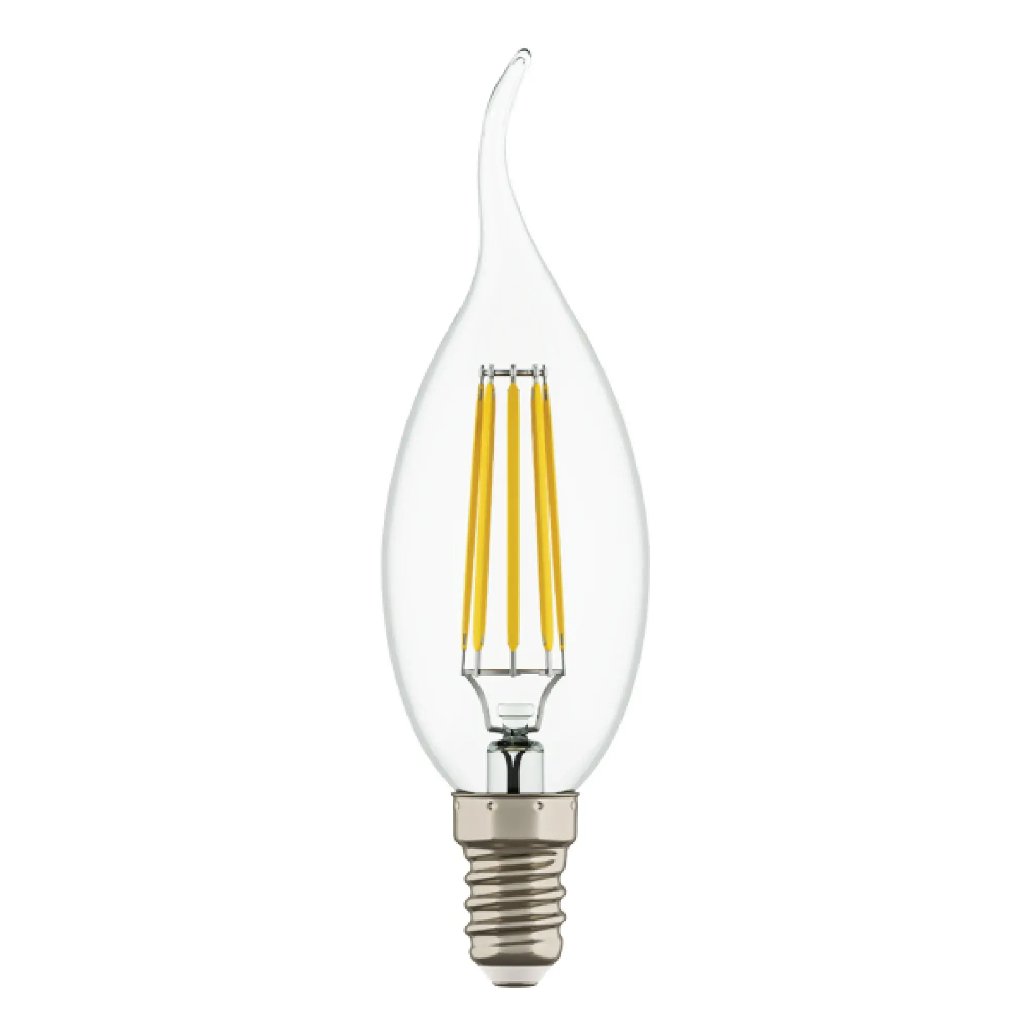 Тип: Светодиодная лампа FILAMENT; Напряжение (V): 220; Тип колбы: CА35 - свеча на ветру; Цоколь: E14; Мощность (W): 6; Эквивалентная мощность лампы накаливания (W): 65; Световой поток: 400-430LM; Угол рассеивания (G): 360; Особенности (Опции): прозрачная колба; Цветопередача: ; Цветовая температура (К): 3000; Срок службы (Ч): 30000; Диммируемость: нет ;