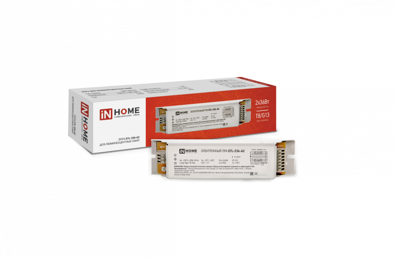 Аппарат пускорегулирующий электронный (ЭПРА) для люминесцентных ламп ETL-236-А2 2х36Вт Т8/G13 IN HOME 4690612032870