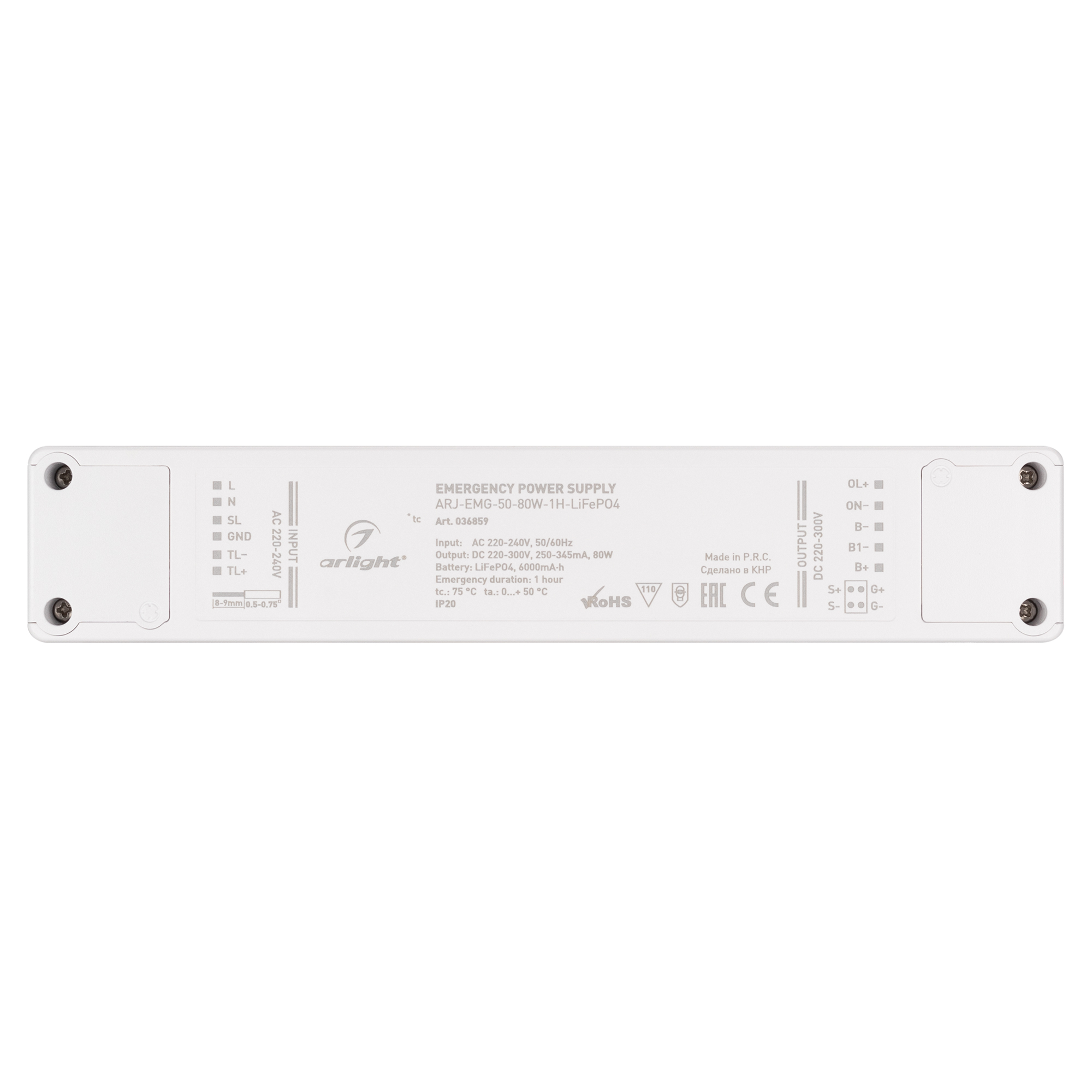 Блок аварийного питания ARJ-EMG-50-80W-1H-LiFePO4 (Arlight, IP20 Пластик, 3 года)