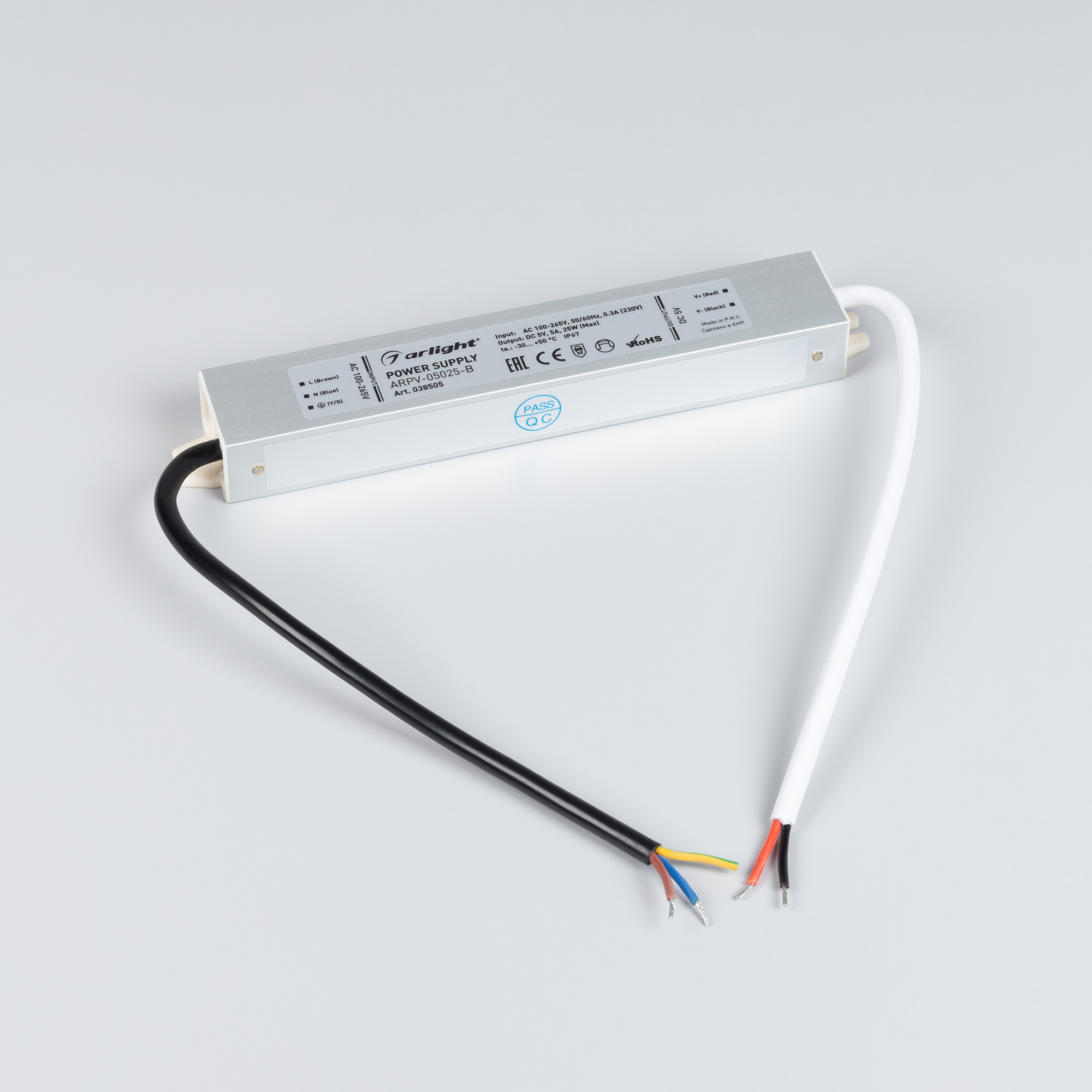 Источник напряжения с гальванической развязкой для светодиодных изделий. Входное напряжение 100-240VAC. Выходные параметры: 5 В, 5 А, 25 Вт. Герметичный пластиковый корпус IP 67. Рабочая температура -30…+50 C⁰. Габаритные размеры длина 182 мм, ширина 30 мм, высота 20 мм. Гарантийный срок 3 года.