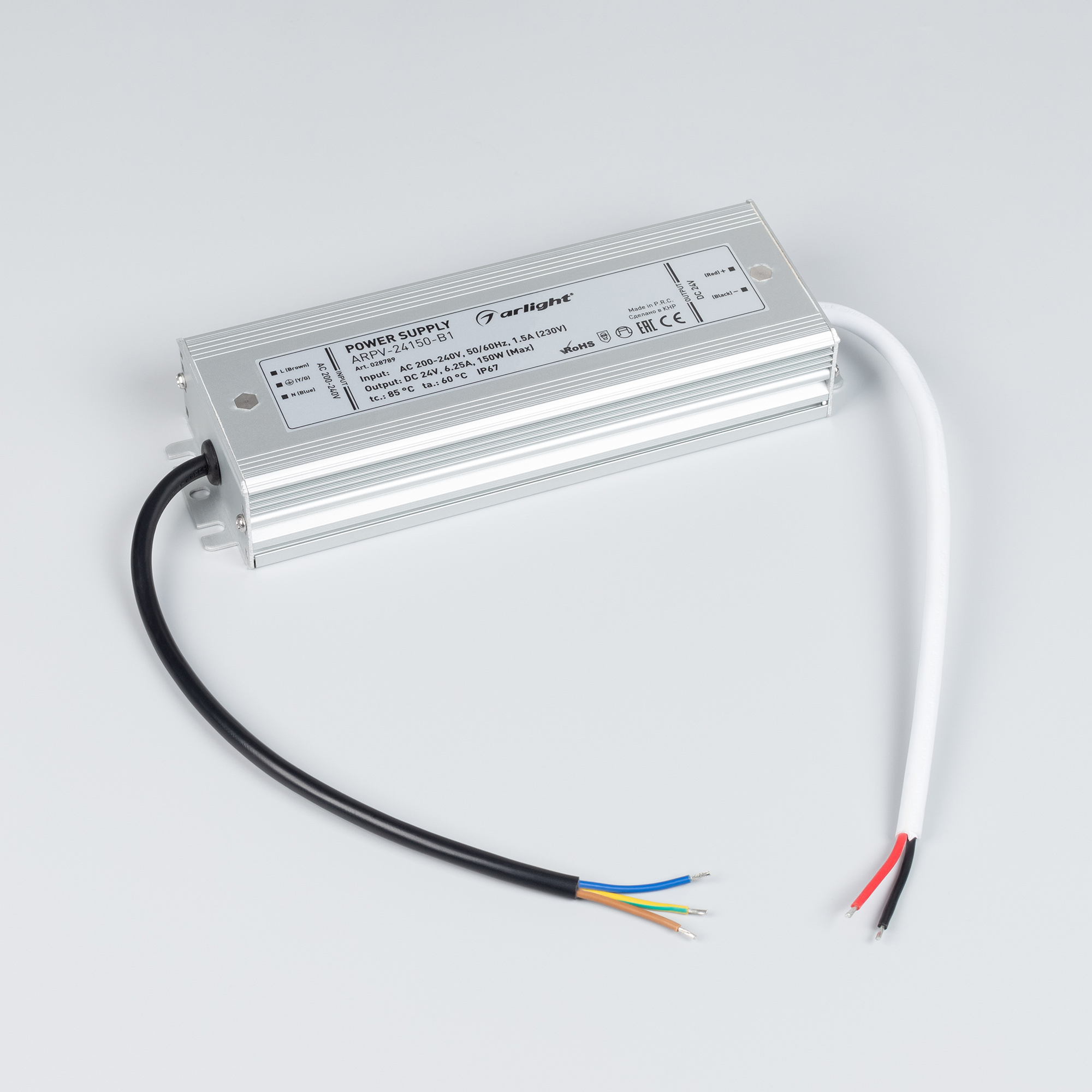 Источник напряжения с гальванической развязкой для светодиодных изделий. Входное напряжение 200-240 VAC. Выходные параметры: 24 В, 6.25 А, 150 Вт. Встроенный PFC >0.5. Герметичный алюминиевый корпус IP 67. Рабочая температура -30…+50C⁰. Габаритные размеры длина 202 мм, ширина 67 мм, высота 34 мм. Совместим с диммерами с частотой ШИМ более 5кГц. Гарантийный срок 3 года.