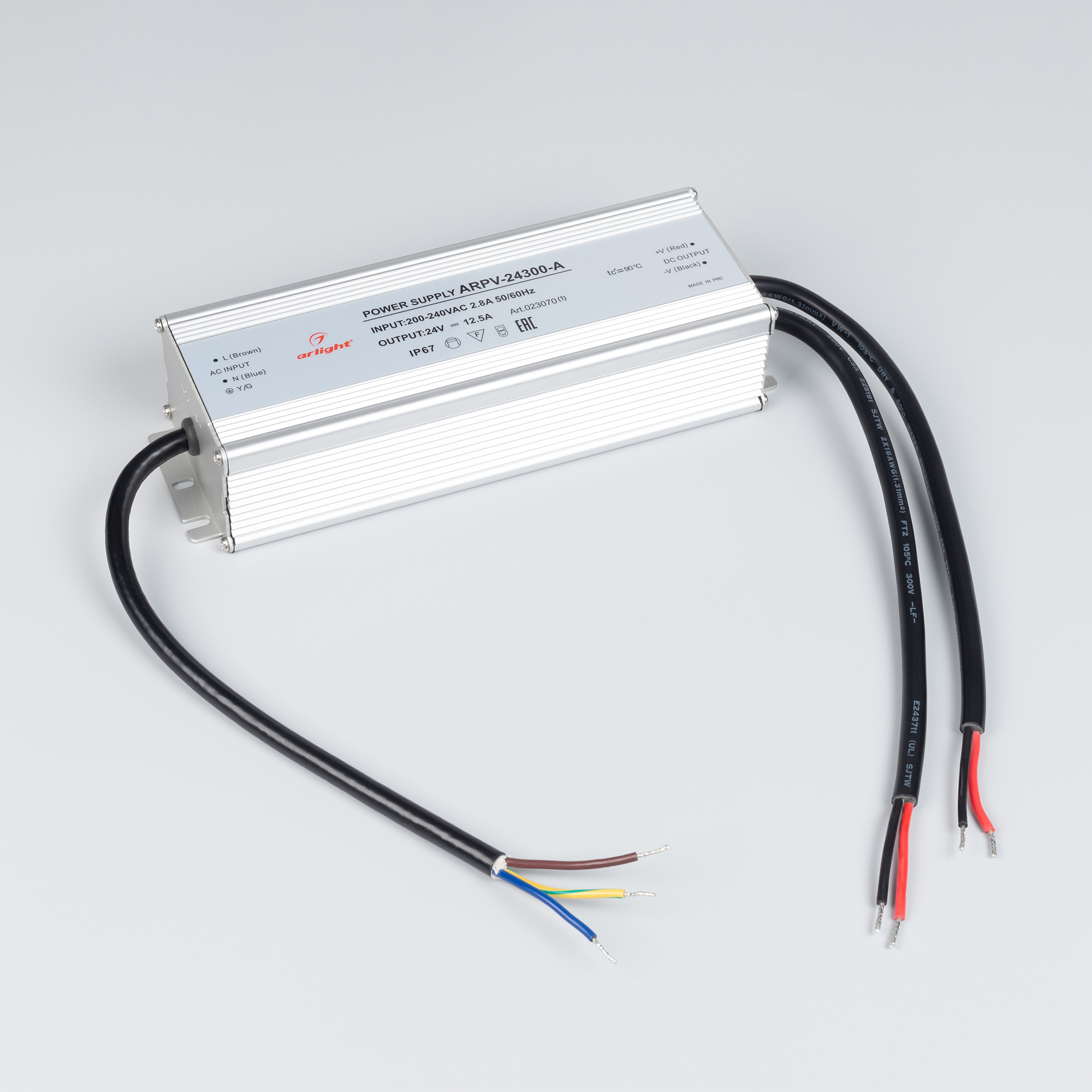 Источник напряжения с гальванической развязкой для светодиодных изделий. Входное напряжение 200-240 VAC. Выходные параметры: 24 В, 12,5 А, 300 Вт. Встроенный PFC >0,5. Герметичный алюминиевый корпус IP 67. Рабочая температура -30…+50C⁰. Габаритные размеры длина 219 мм, ширина 74 мм, высота 46 мм. Гарантийный срок 3 года.