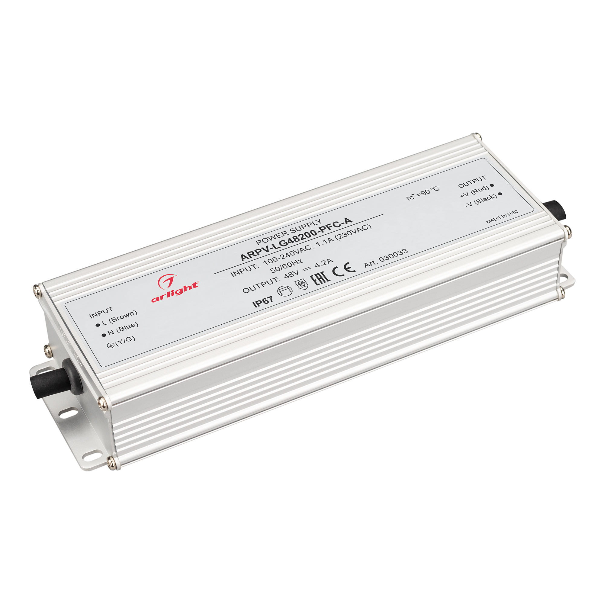 Блок питания ARPV-LG48200-PFC-A (48V, 4.2A, 200W) (Arlight, IP67 Металл, 5 лет)