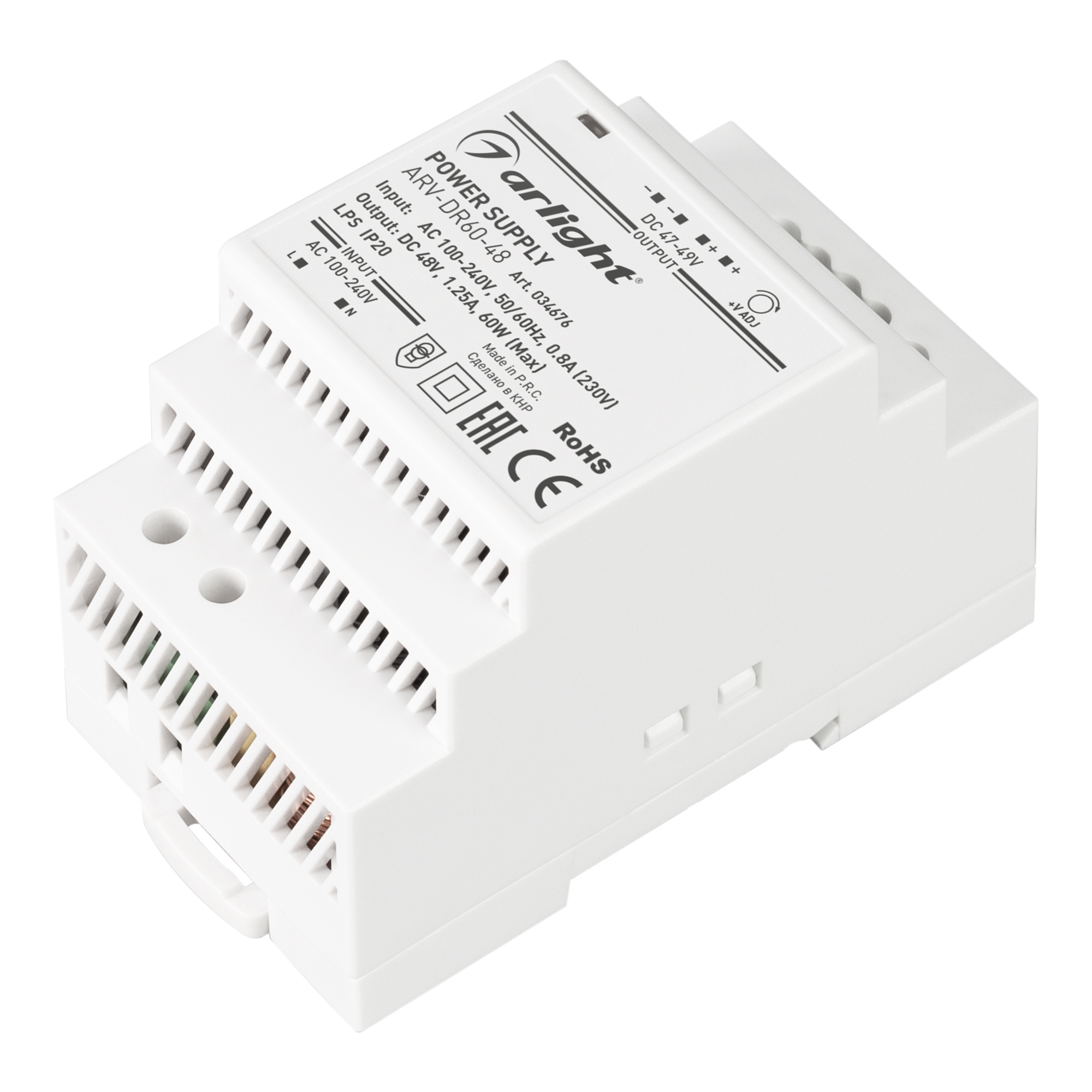 Блок питания ARV-DR60-48 (48V, 1.25A, 60W) (Arlight, IP20 DIN-рейка)